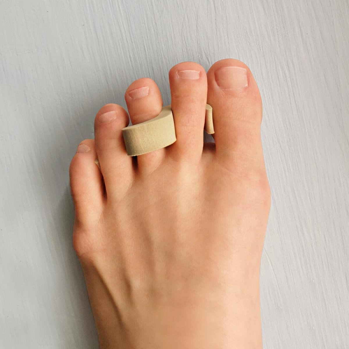 Polstrovací podložku jednoduše umístěte přes vbočený prst a stabilizujte ji z obou stran pod sousedními prsty.