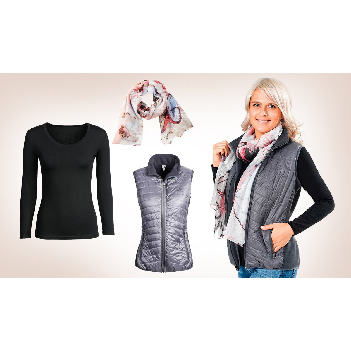 3 dílný módní set Anna - vesta, tričko a šála, vel. S