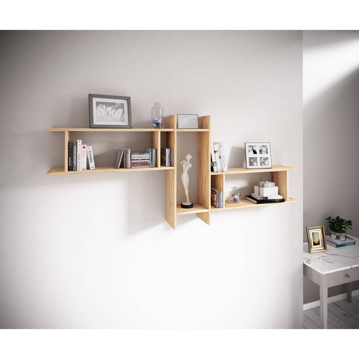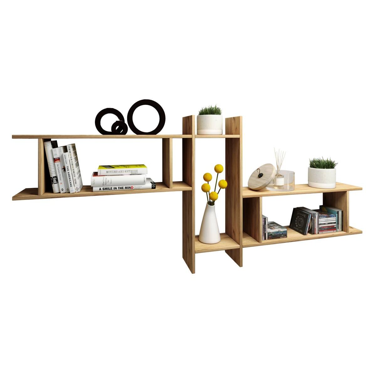 3dílná nástěnná police Sirola Maxi, dub medový
