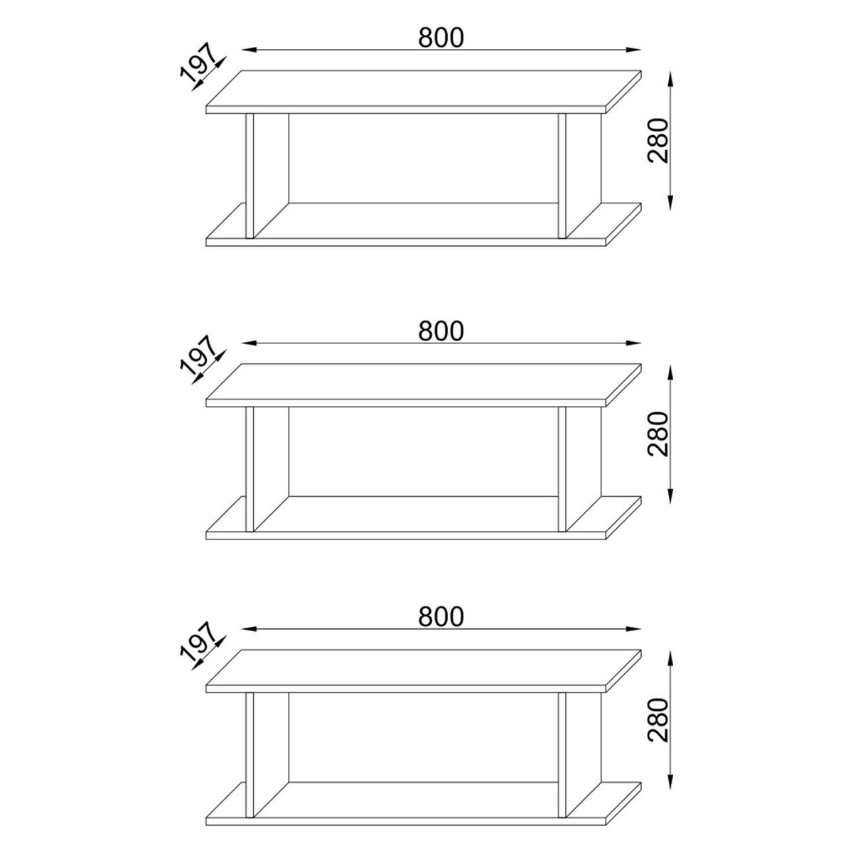 Sada 3 plovoucích polic VCM "Sirola Maxi" - Tato závěsná police upoutá pozornost na každé zdi - Lze použít samostatně a lze ji rozložit - Možnost svislé nebo vodorovné montáže jednotlivých polic - Mnoho otevřených přihrádek - K dispozici v různých barvách - Rozměry cca: V 80 x Š 188 x H 20 cm - Rozměry každé police cca: V 28 x Š 80 x H 20 cm - Rozměry přihrádky cca: 61 x 25 cm - Přesah vpravo a vlevo: Je 8 cm - Replika dřevěné konstrukce - Dodávka obsahuje montážní materiál a návod k montážiDoplňkové parametry