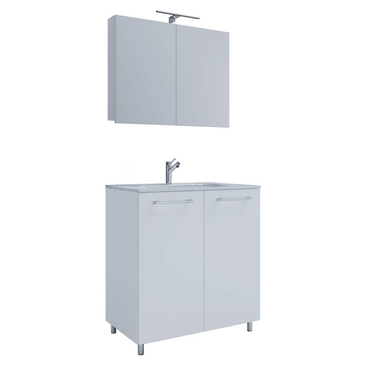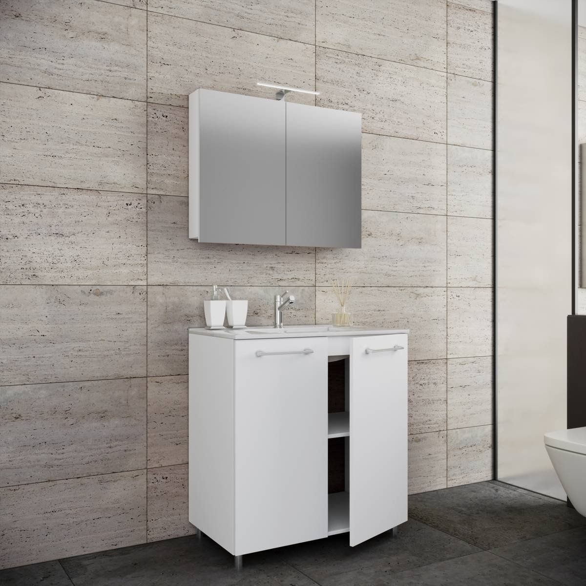 3dílná umyvadlová skříňka Badinos 2 dveře 60 cm se zrcadlem, bílá
