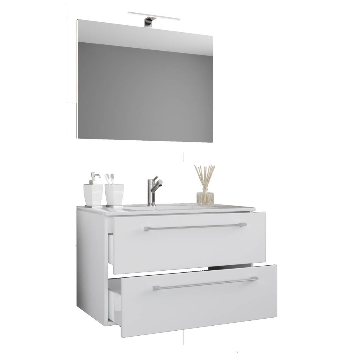 3dílná umyvadlová skříňka Badinos 2 zásuvky 60 cm se zrcadlem, bílá