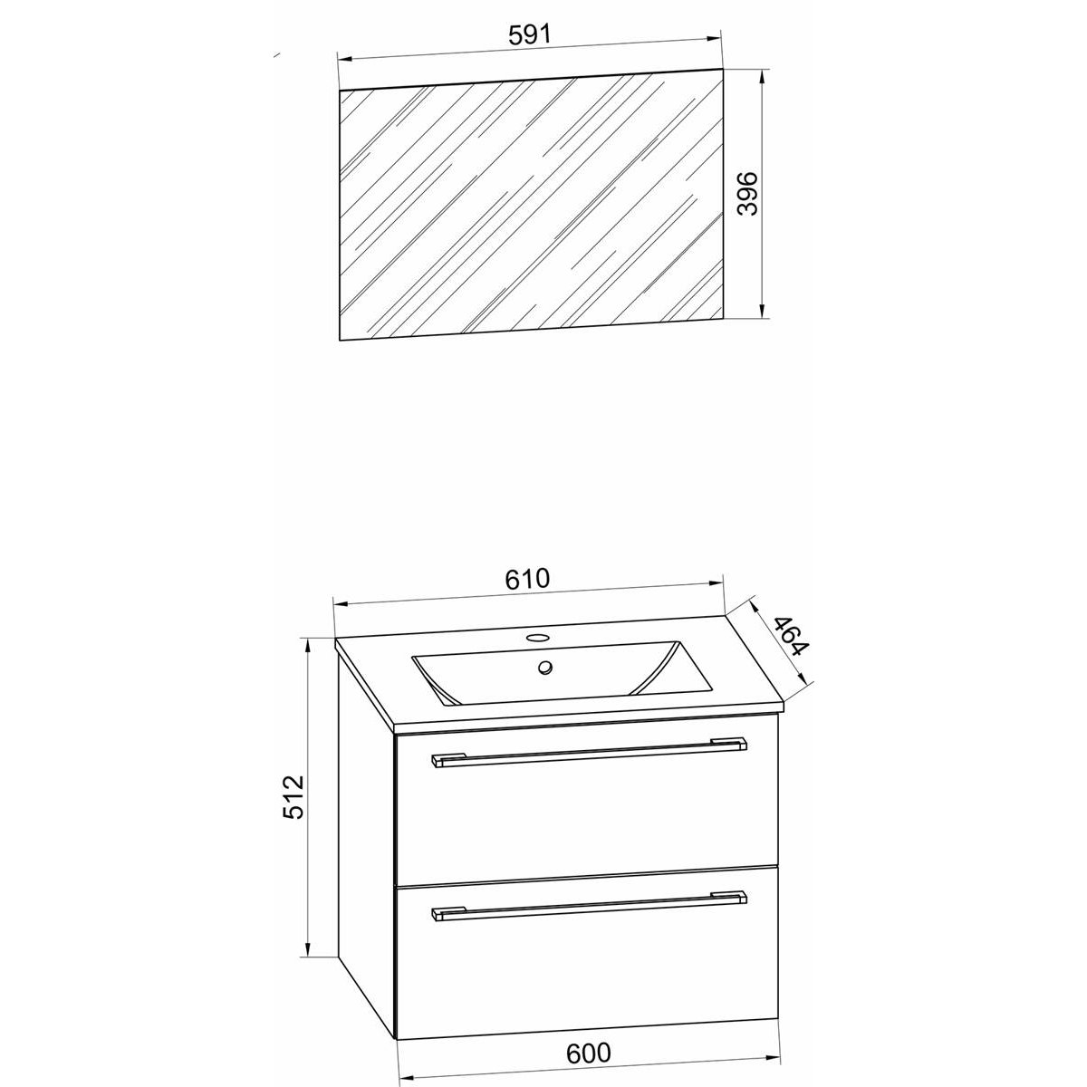 Hlavní vlastnosti: Sada obsahuje: - 1x Spodní skříňka se 2 zásuvkami - 1x Keramické umyvadlo - 1x Zrcadlo z odolného skla Tato sada je specialitou pro vaši ložnici. Sada obsahuje jednu skříňku pod umyvadlo se dvěma zásuvkami. Moderní keramické umyvadlo a zrcadlo nabízejí dostatek úložného prostoru pro hygienické potřeby a další náčiní. Spodní skříňka pod umyvadlo: - Rozměry cca V 50 x Š 60 x H 46 cm - Korpus vyrobený z odolného melaminu - Dvě velké zásuvky s kovovými kolejnicemi s dlouhou životností - Úchytka v hliníkovém provedení - Snadné a bezpečné upevnění na zeď Umyvadlo: - Rozměry cca V 17 x Š 60 x H 46 cm - Odolná keramika Zrcadlo: - Rozměry cca V 42 x Š 60 x H 3 cm - Zrcadlo z odolného skla - Snadné a bezpečné upevnění na zeď Mycí stanici lze kombinovat s dalším nábytkem ze série „VCM VCB8“.Doplňkové parametry
