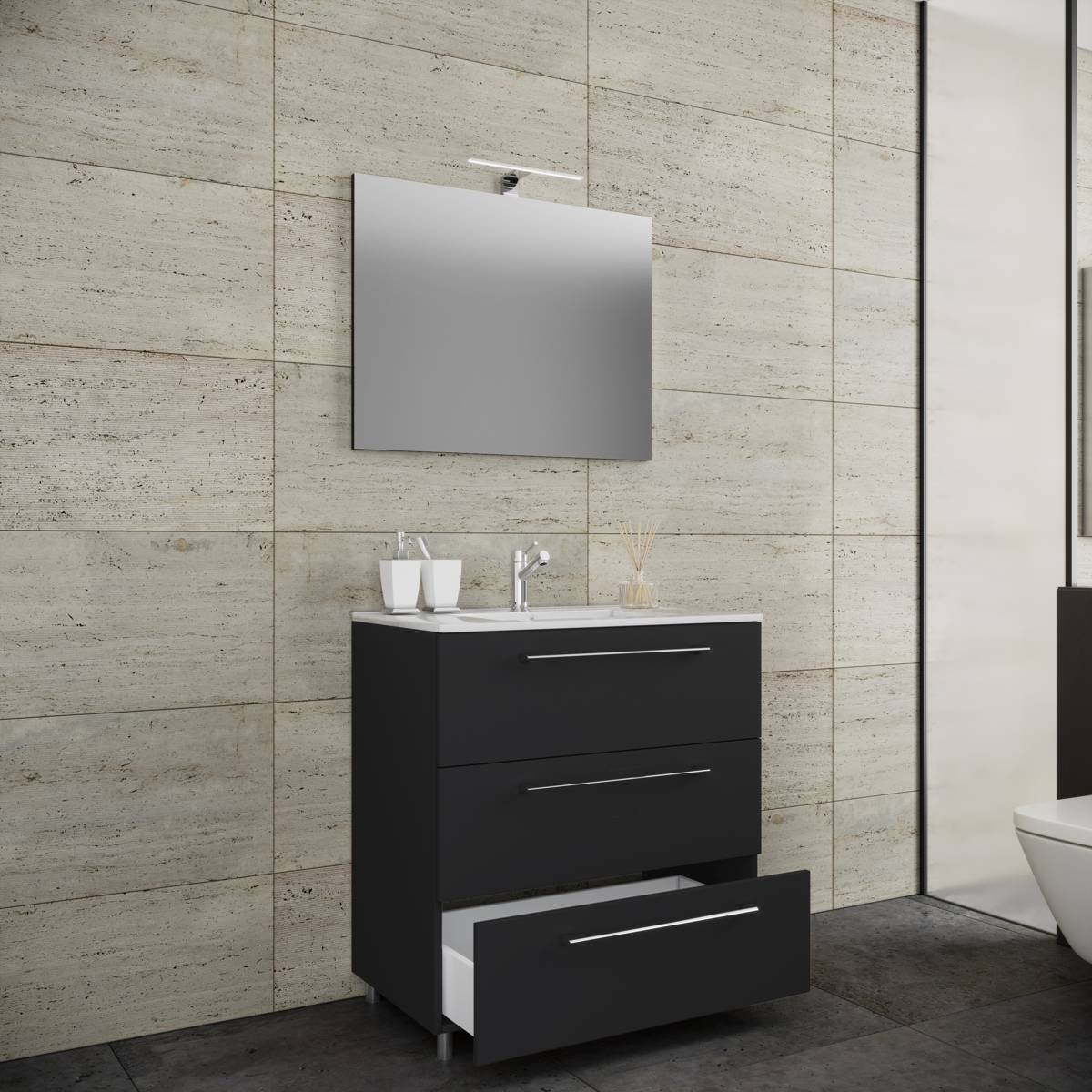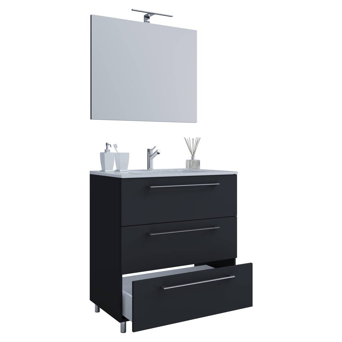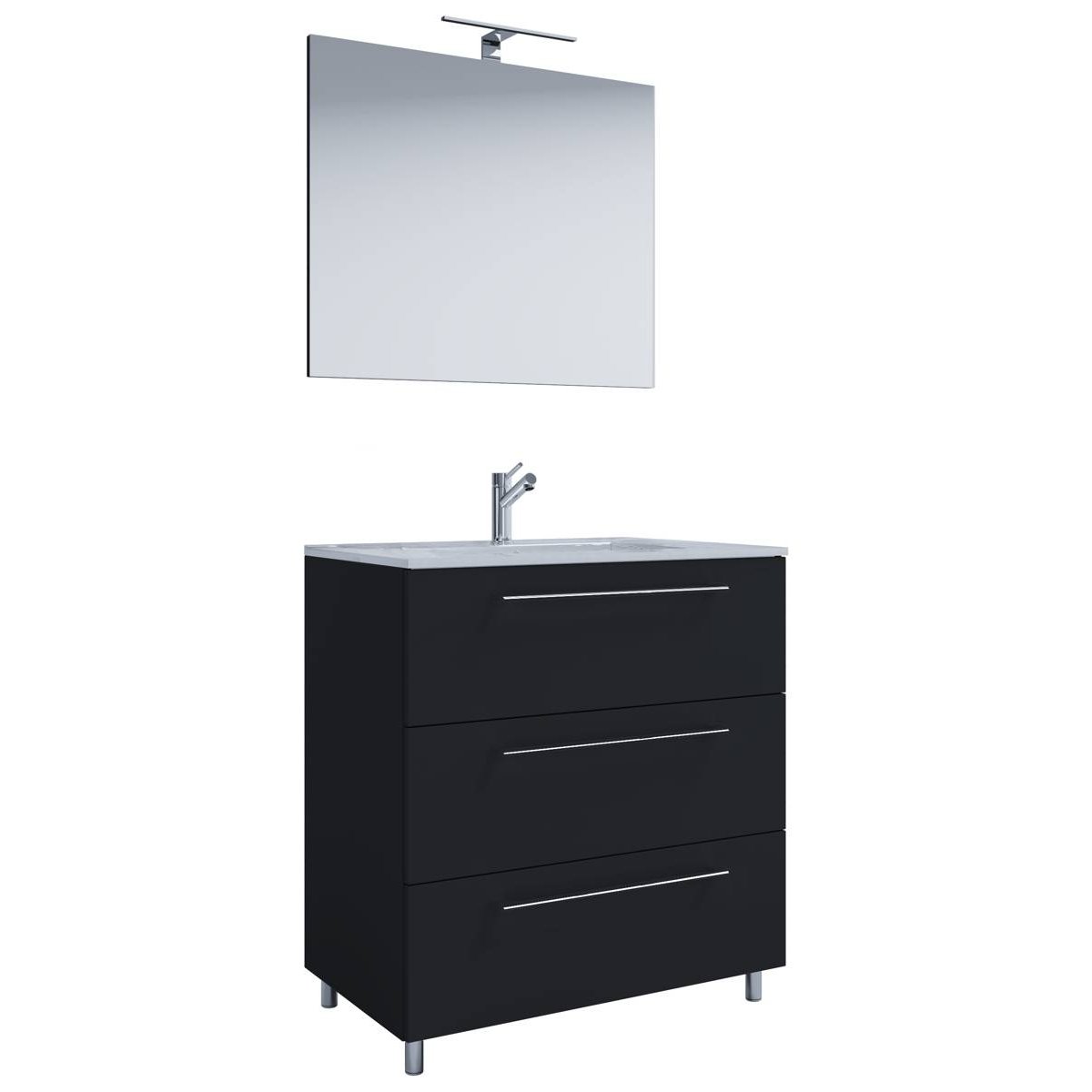 3dílná umyvadlová skříňka Badinos 3 zásuvky 80 cm se zrcadlem, černá