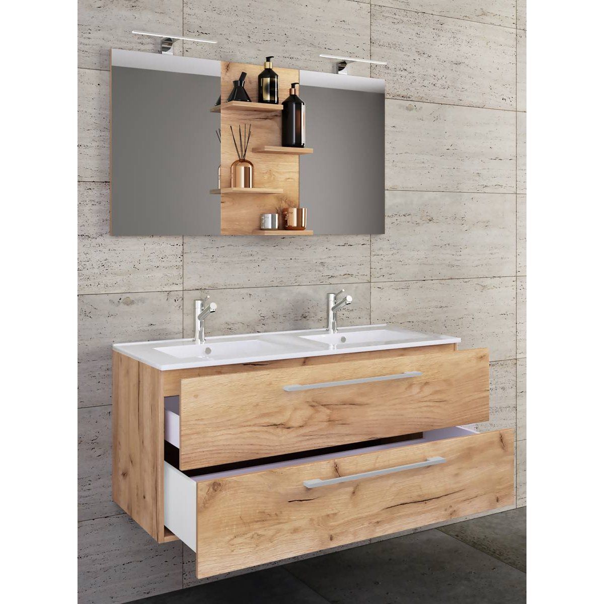 3dílná umyvadlová skříňka Budasi se zrcadlem, dub medový