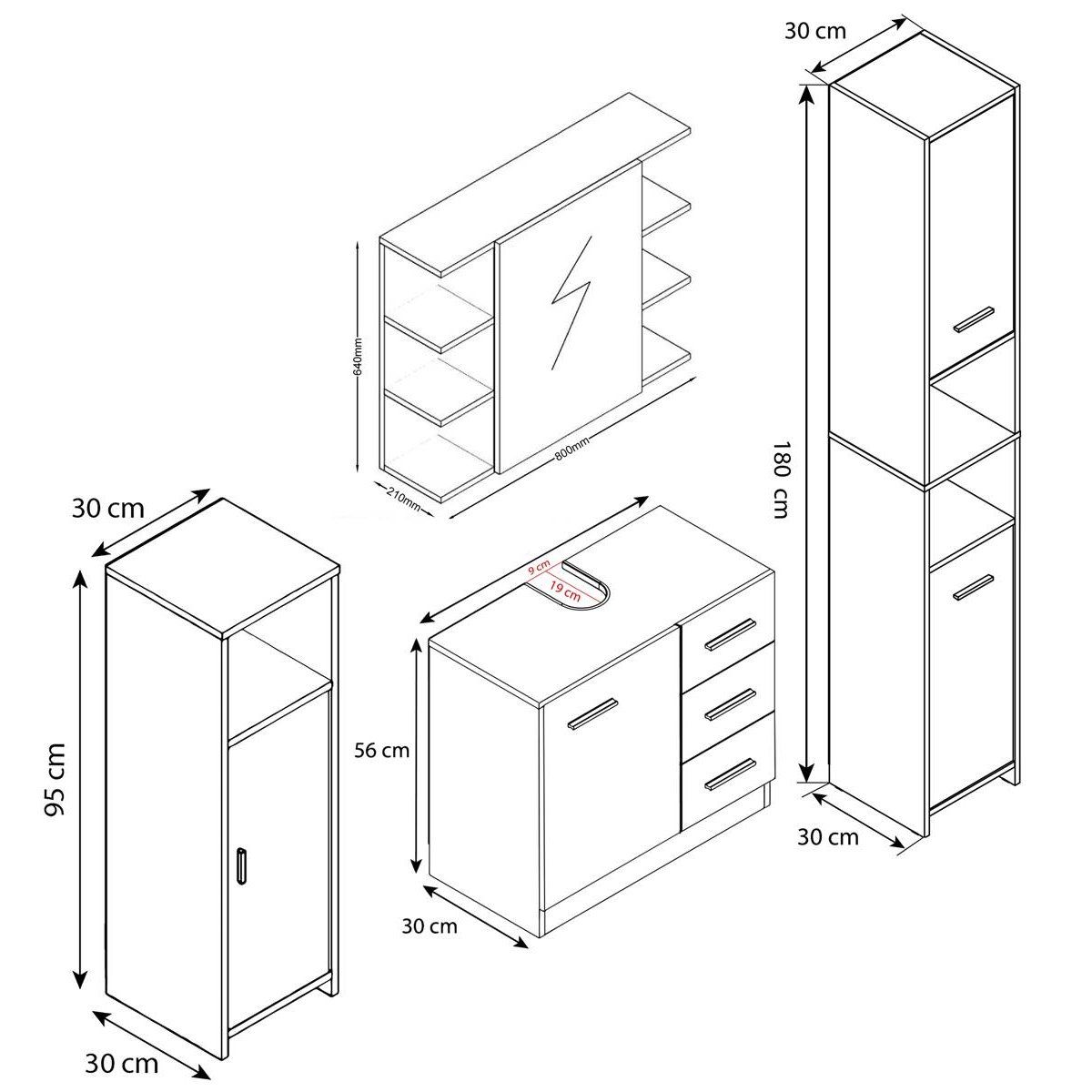 - 1x skříňka pod umyvadlo
