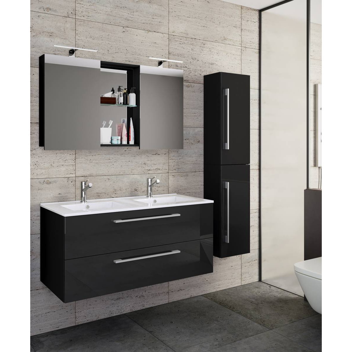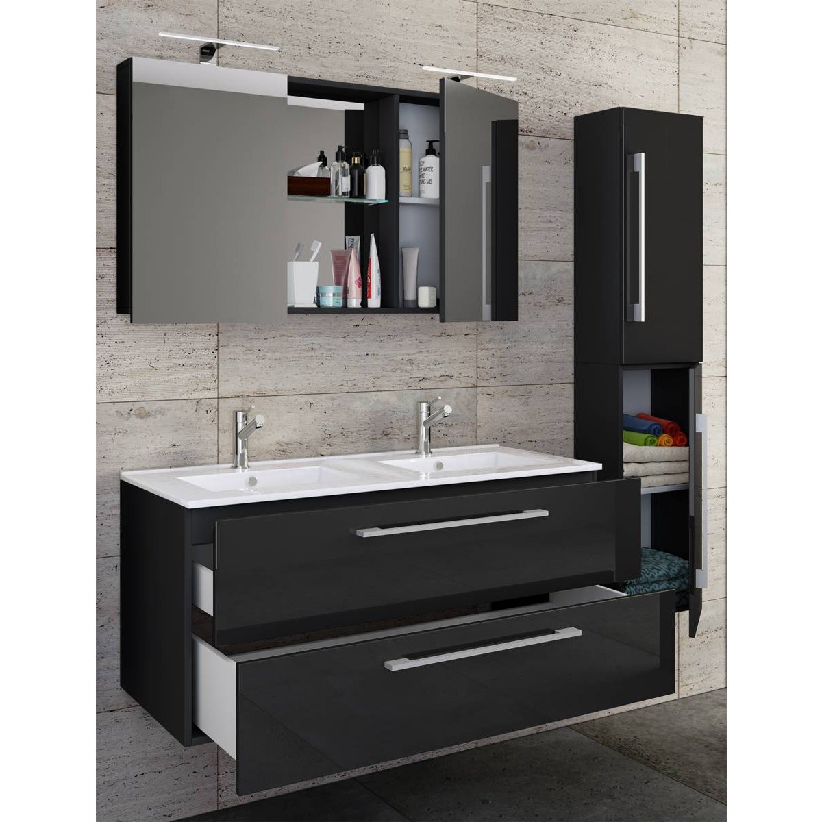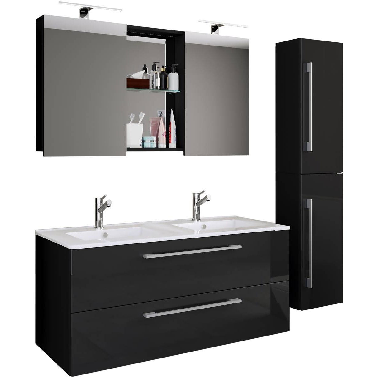 4dílná umyvadlová skříňka Budasi s vysokou skříňkou, umyvadlová, černá