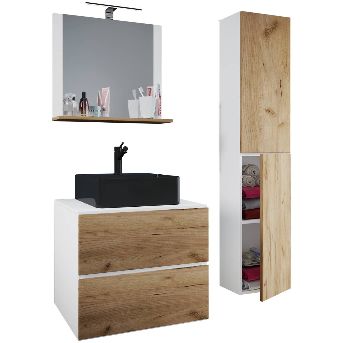 4dílná umyvadlová skříňka Lendas BL L se zrcadlem 60 cm + vysoká skříňka, dub medový