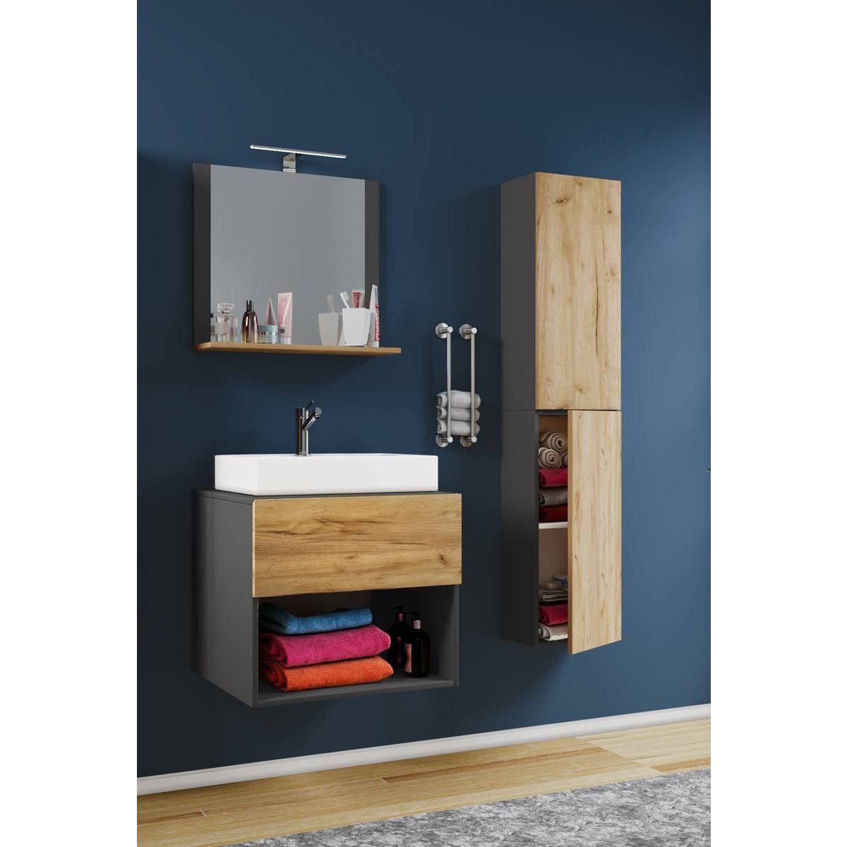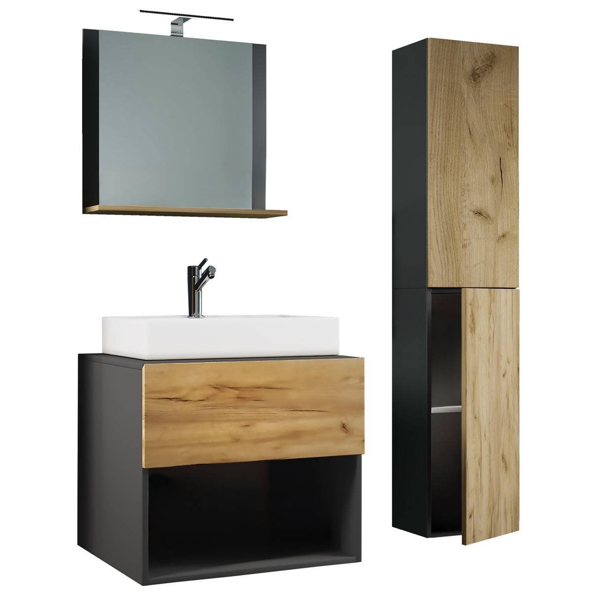 4dílná umyvadlová skříňka Lendas II 60 cm včetně zrcadla a vysoké skříňky, antracitová