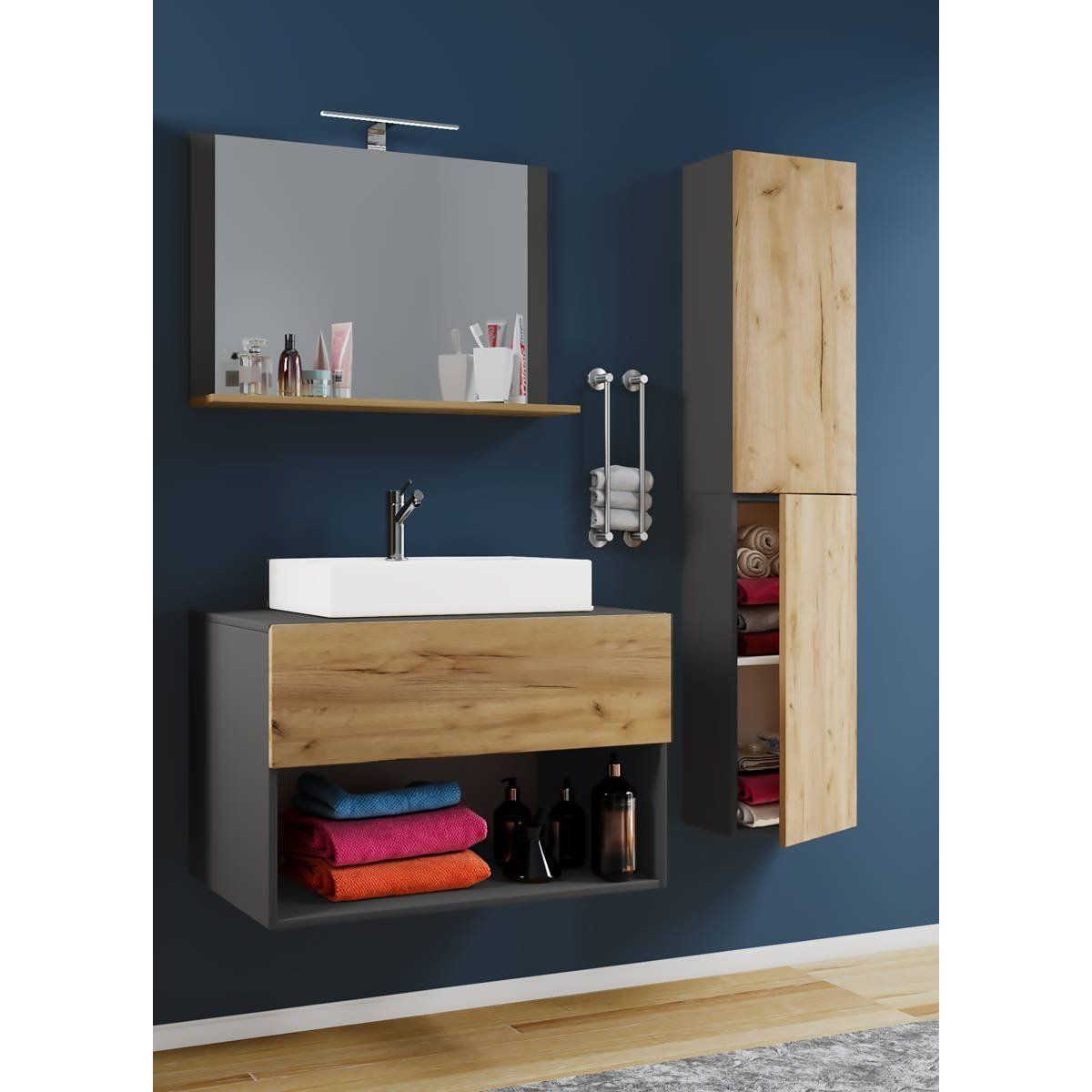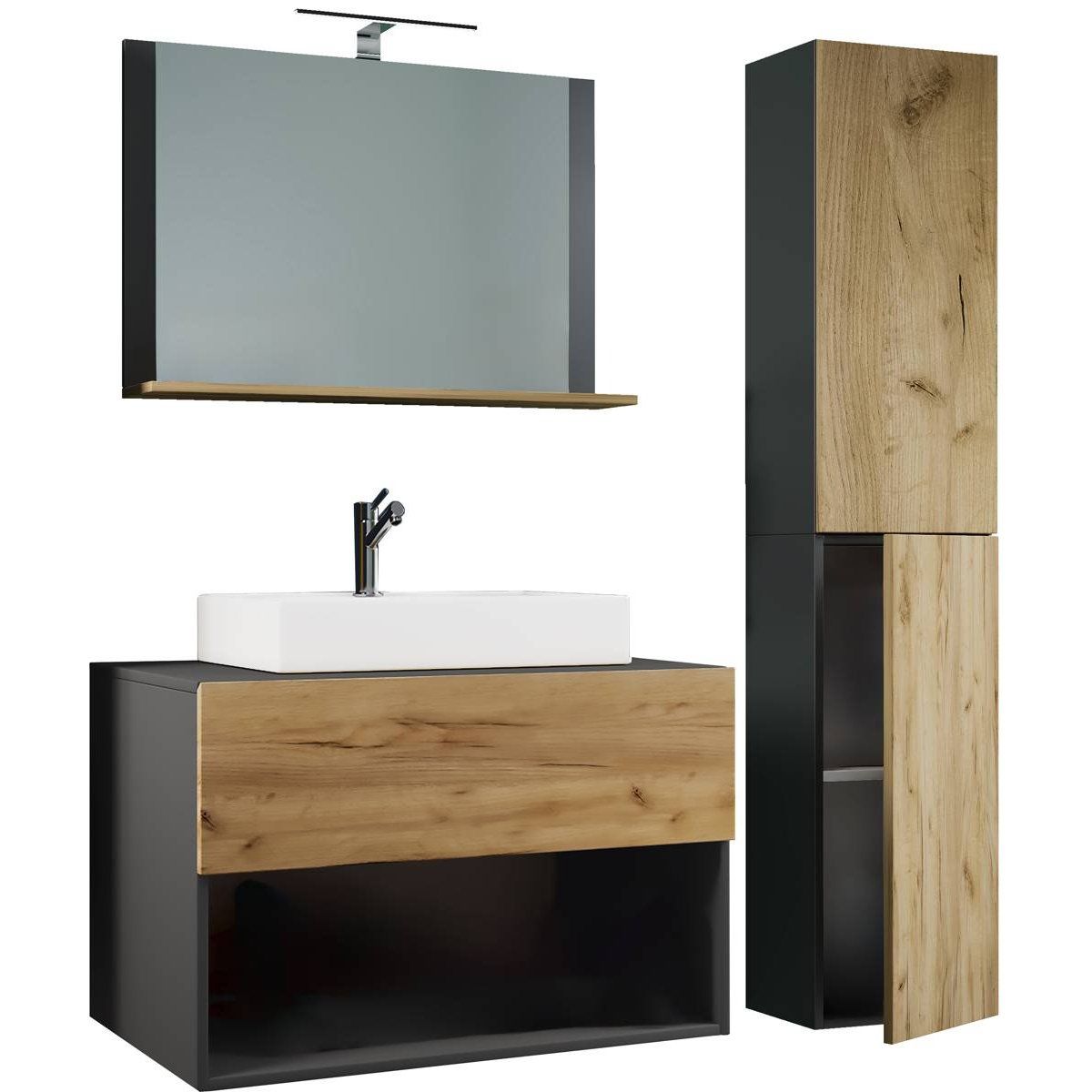 4dílná umyvadlová skříňka Lendas II 80 cm včetně zrcadla a vysoké skříňky, antracitová