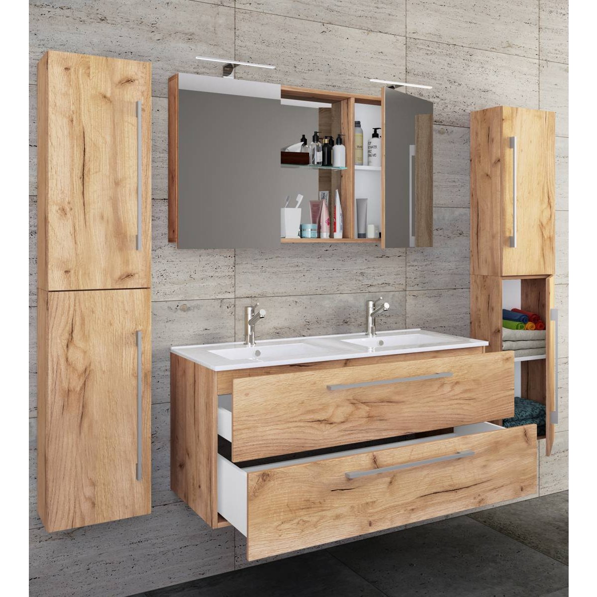 5dílná umyvadlová skříňka Budasi se 2 vysokými skříňkami, dub medový
