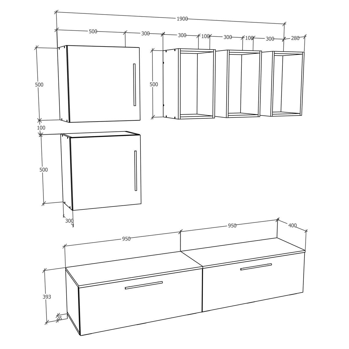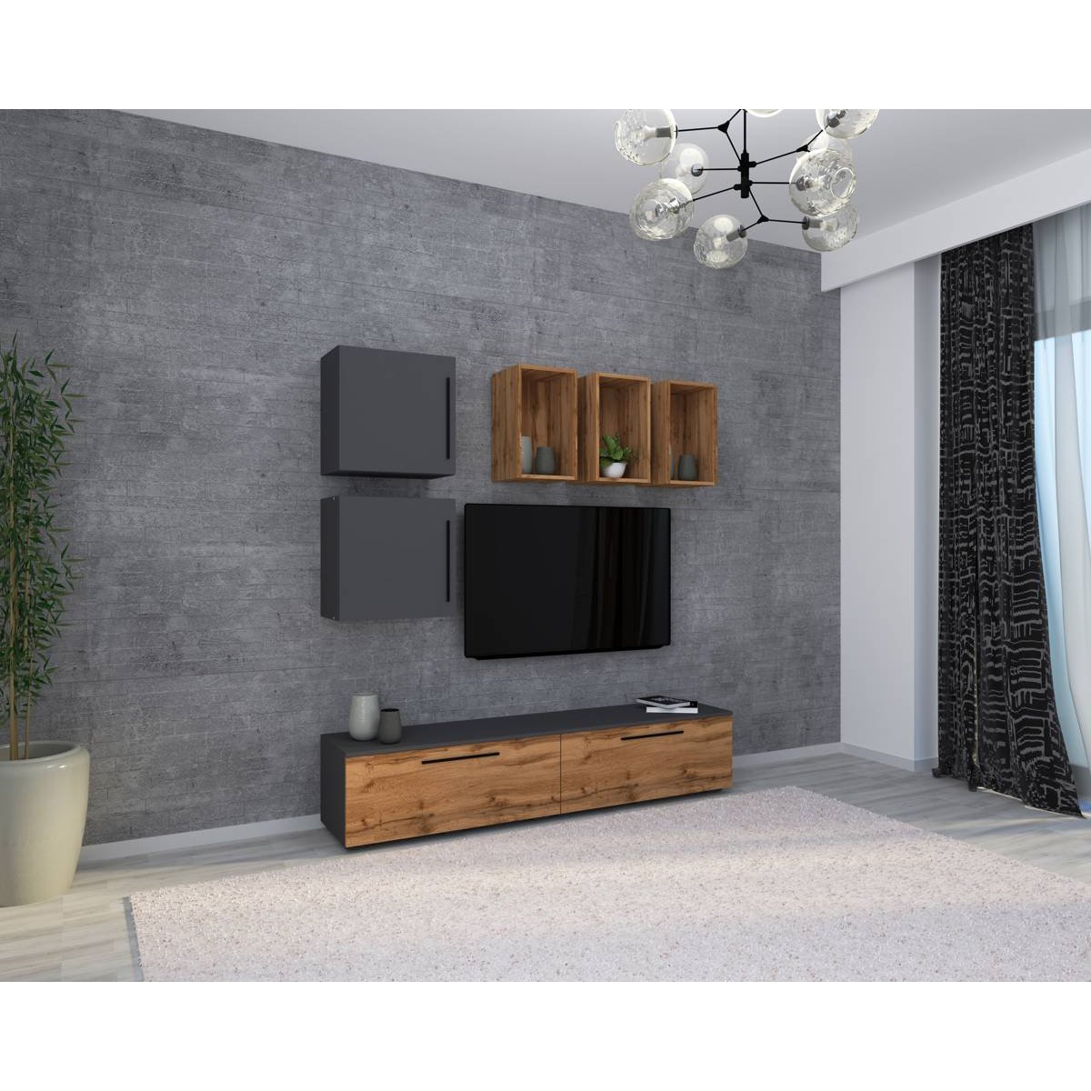 7dílná nástěnná skříňka Arila L, antracitová