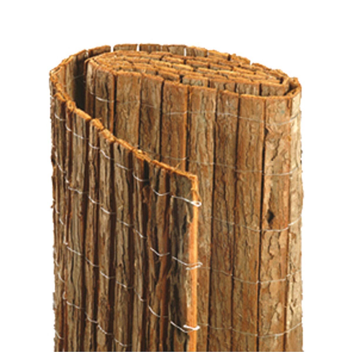 Rohož je vyrobena z dvojitých pásků z přírodní kůry, přičemž přední i zadní strana mají stejnou kvalitu a vzhled. Materiál je zcela neprůhledný, takže poskytuje maximální soukromí. Přírodní kůra je zároveň odolná vůči povětrnostním vlivům i hnilobě, což zajišťuje dlouhou životnost.
