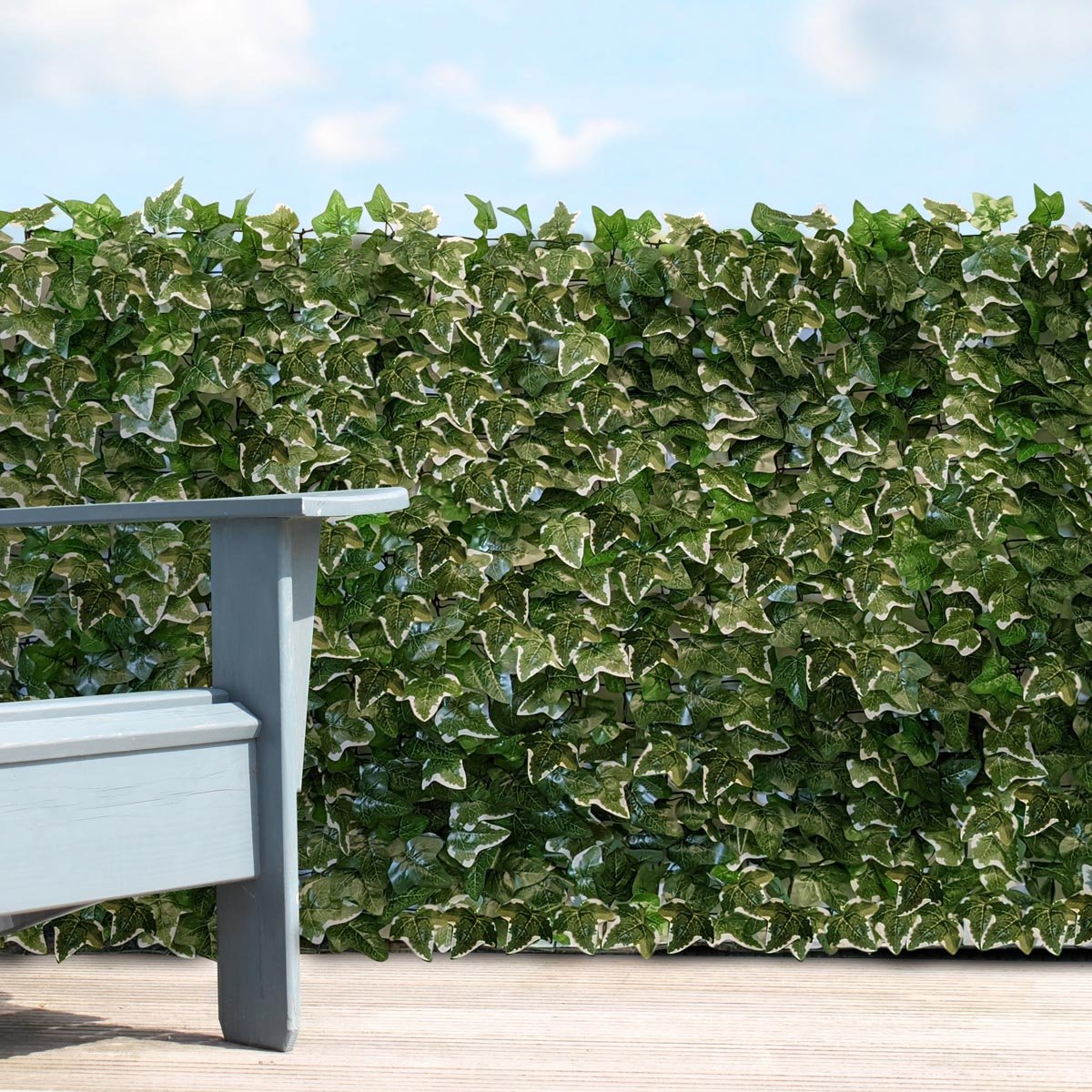 Dekorativní zahradní zástěna s listy břečťanu vytváří přirozený vzhled zelené stěny a poskytuje více soukromí na balkoně, terase nebo u plotu. Husté textilní listy břečťanu vytvářejí neprůhlednou clonu na plot, která zároveň působí jako stylový zelený doplněk.