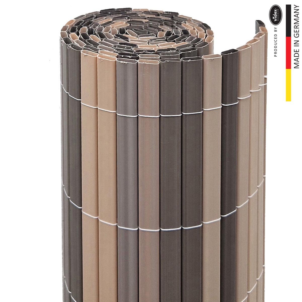 Zástěna je vyrobena z pevných PVC trubiček, které jsou pevně propleteny do stabilní rohože. Materiál je UV stabilní a odolný vůči povětrnostním vlivům, takže je vhodný pro dlouhodobé venkovní použití.