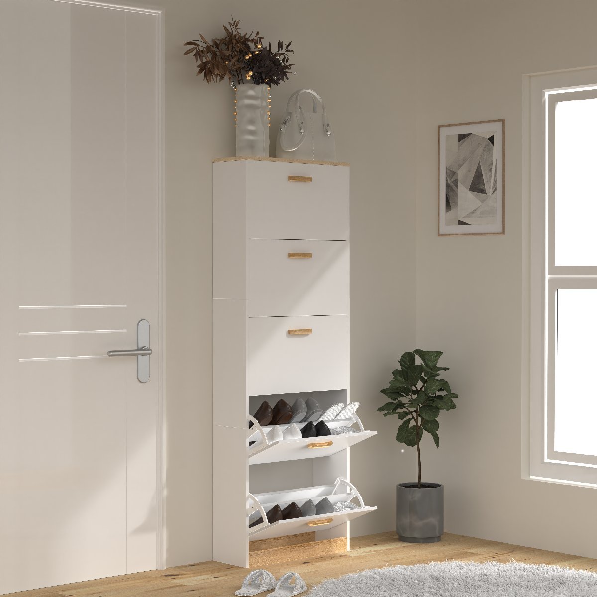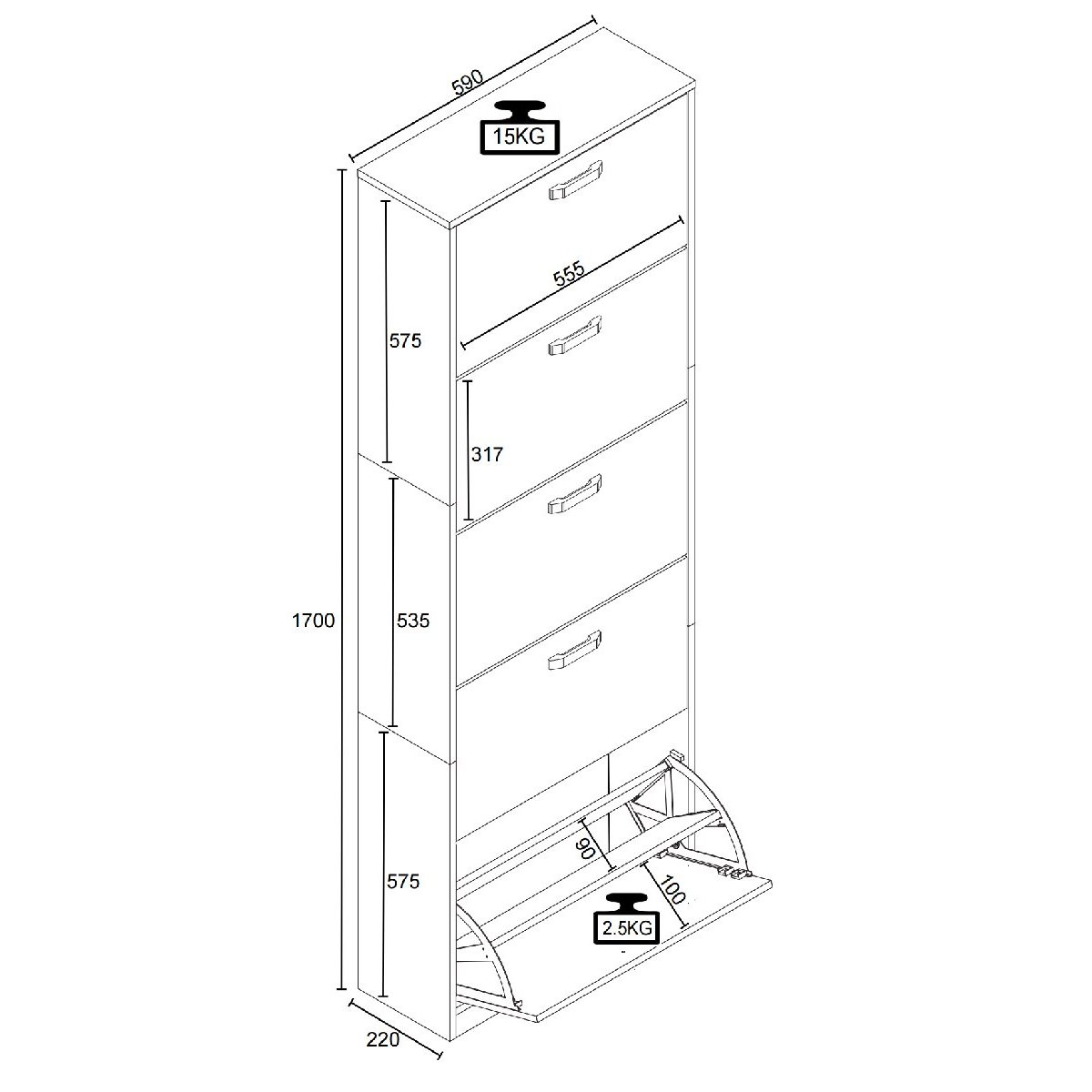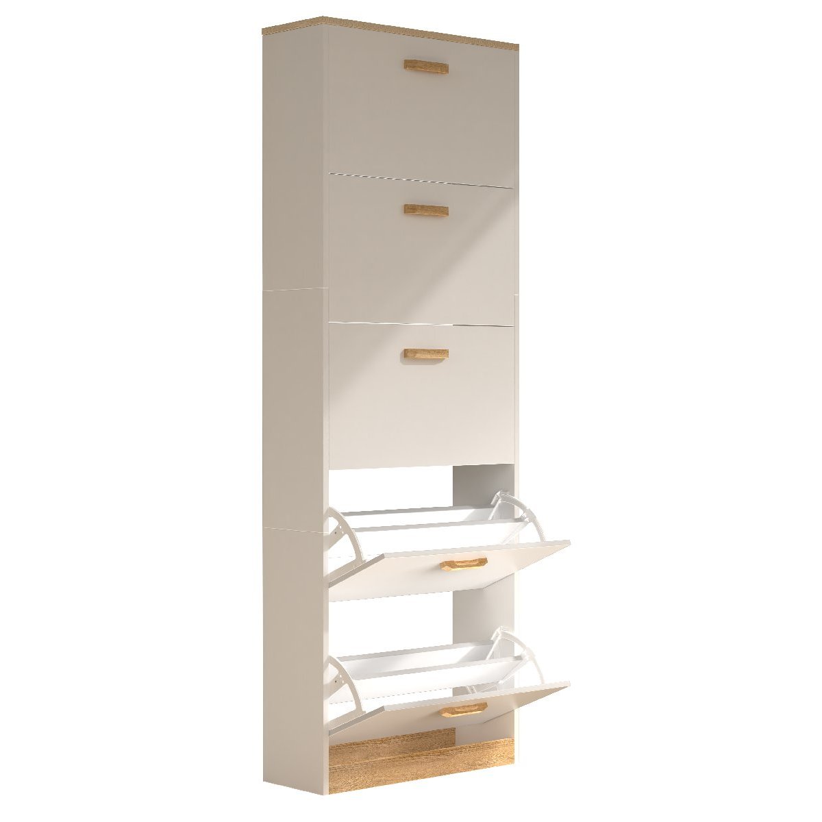 Hlavní vlastnosti: - Rozměry cca v. 170 x š. 59 x h. 22 cm - 5 otevíratelných přihrádek - Pro cca 30 párů bot Botník „Halom“ je malý prostorový zázrak s dostatkem úložného prostoru. Každá z pěti přihrádek je rozdělena tak, aby boty mohly být úhledně a prostorově úsporně uloženy. Designér vytvořil zvláštní akcent s barevnými akcenty, které elegantně zvýrazňují úchyty a dělají z botníku nadčasový poutač. Sklápěcí stojan na boty lze kombinovat s dalšími botníky z řady „VCM Halom“. Od 70. let 20. století se VCM specializuje na design, výrobu a distribuci nábytku s férovým poměrem cena/výkon a již zkrášlila miliony domácností.Doplňkové parametry