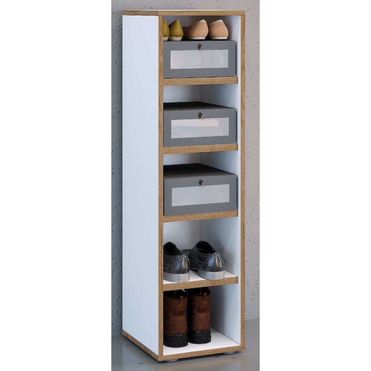 Hlavní vlastnosti: - Kování z vysoce kvalitního kovu - Pět přihrádek až pro 5 párů bot - Rozměry nábytku: cca v. 110 x š. 30 x h. 33 cm Botník „Salia“ je malý prostorový zázrak. Nabízí kombinaci úložného prostoru a dekorace jako žádný jiný kus nábytku. Pět přihrádek poskytuje dostatek místa pro pět párů bot nebo jiné náčiní. Komodu lze kombinovat s dalším nábytkem z řady „VCM Salia“. Od 70. let 20. století se VCM specializuje na design, výrobu a distribuci nábytku s férovým poměrem cena/výkon a již zkrášlila miliony domácností.Doplňkové parametry