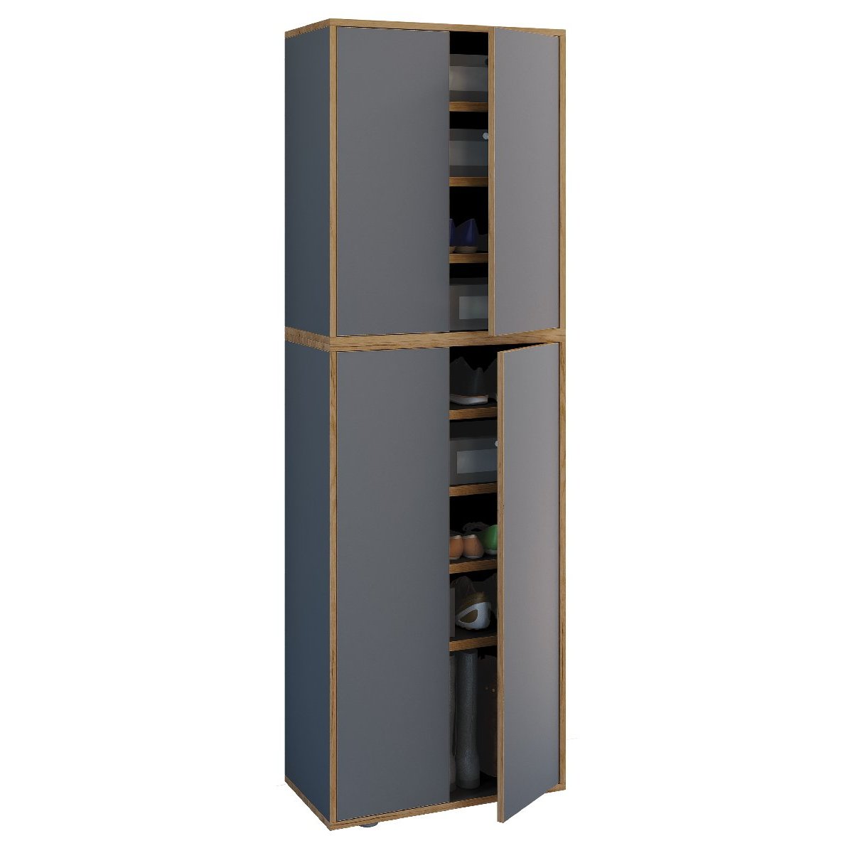 Hlavní vlastnosti: - Kování vyrobené z vysoce kvalitního kovu - Praktické rozdělení polic díky 9 přihrádkám - Bezúchytkové pantové dveře s funkcí otevírání stisknutím - Pro 18 párů bot - Rozměry cca š. 60 x v. 183 x h. 33 cm 9 přihrádek poskytuje dostatek úložného prostoru a požadovaný pořádek ve skříni. Designér navrhl skříň s bezúchytkovými dveřmi, které lze velmi snadno otevřít stisknutím. Víceúčelovou skříň lze doplnit dalším nábytkem ze série „VCM Salia“, která se vyznačuje nadčasovým designem a vysoce kvalitním zpracováním. Od 70. let 20. století se VCM specializuje na návrh, výrobu a distribuci nábytku s férovým poměrem cena/výkon a již zkrášlila miliony domácností.Doplňkové parametry
