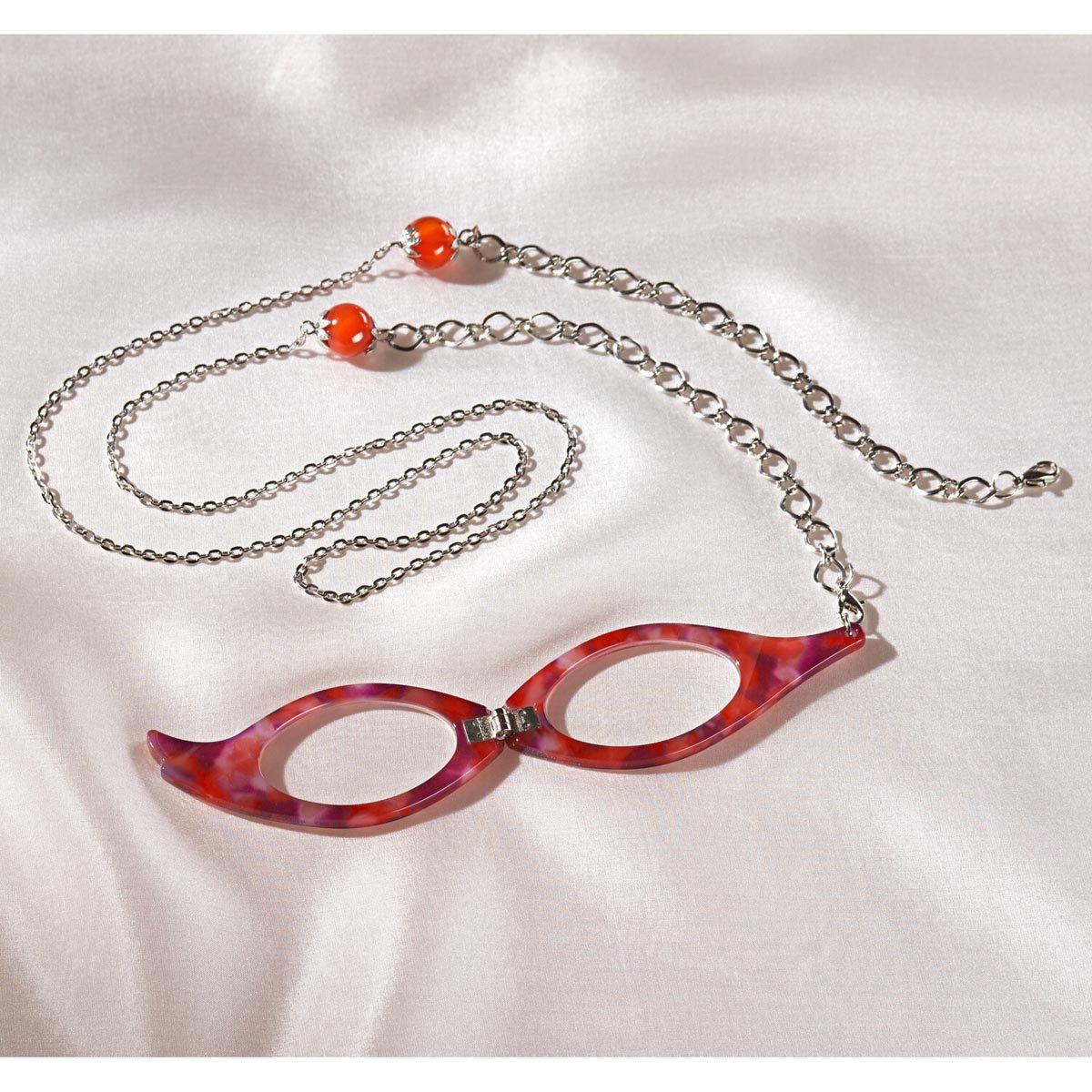 Brýle na čtení s řetízkem, červené +2,5 dpt