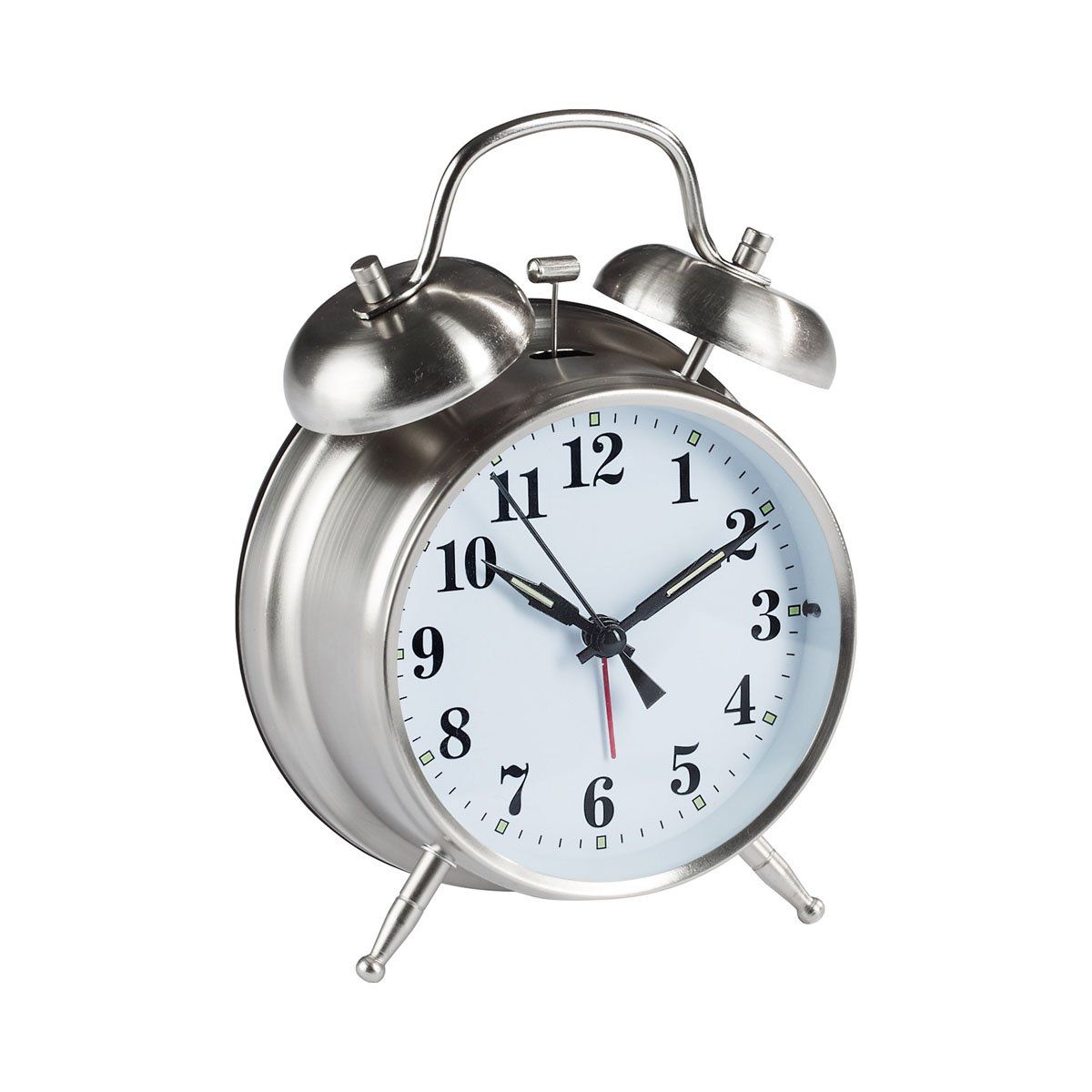 Okouzlující nostalgický budík v klasickém provedení s chromovaným kovovým pouzdrem a analogovým displeje. Ručičky a tečky u čísel v noci fluorescenčně svítí. Provoz na baterie 1x AA (nejsou součástí).