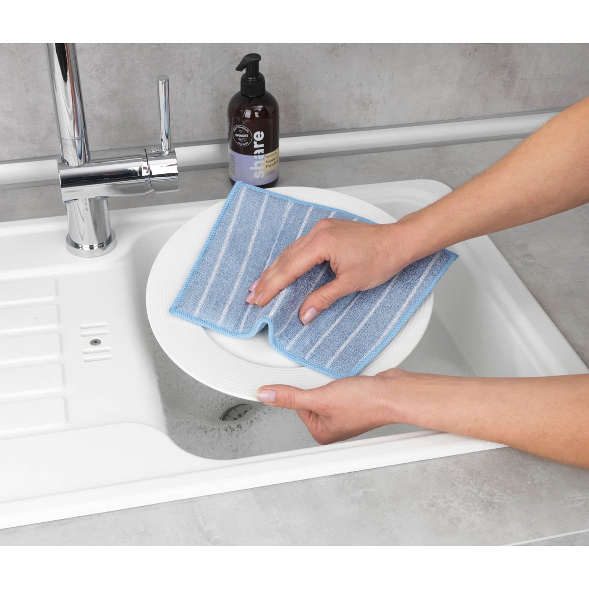 Oboustranná utěrka na mytí nádobí, ale i k pohodlnému utírání pracovní plochy a všech povrchů v domácnosti. Drsná strana odstraní hrubou nečistotu pomocí integrovaných bambusových vláken, jemná strana jemně čistí nádobí a sklenice. Kvalitní mikrovlákno s vysokou absorpční schopností.