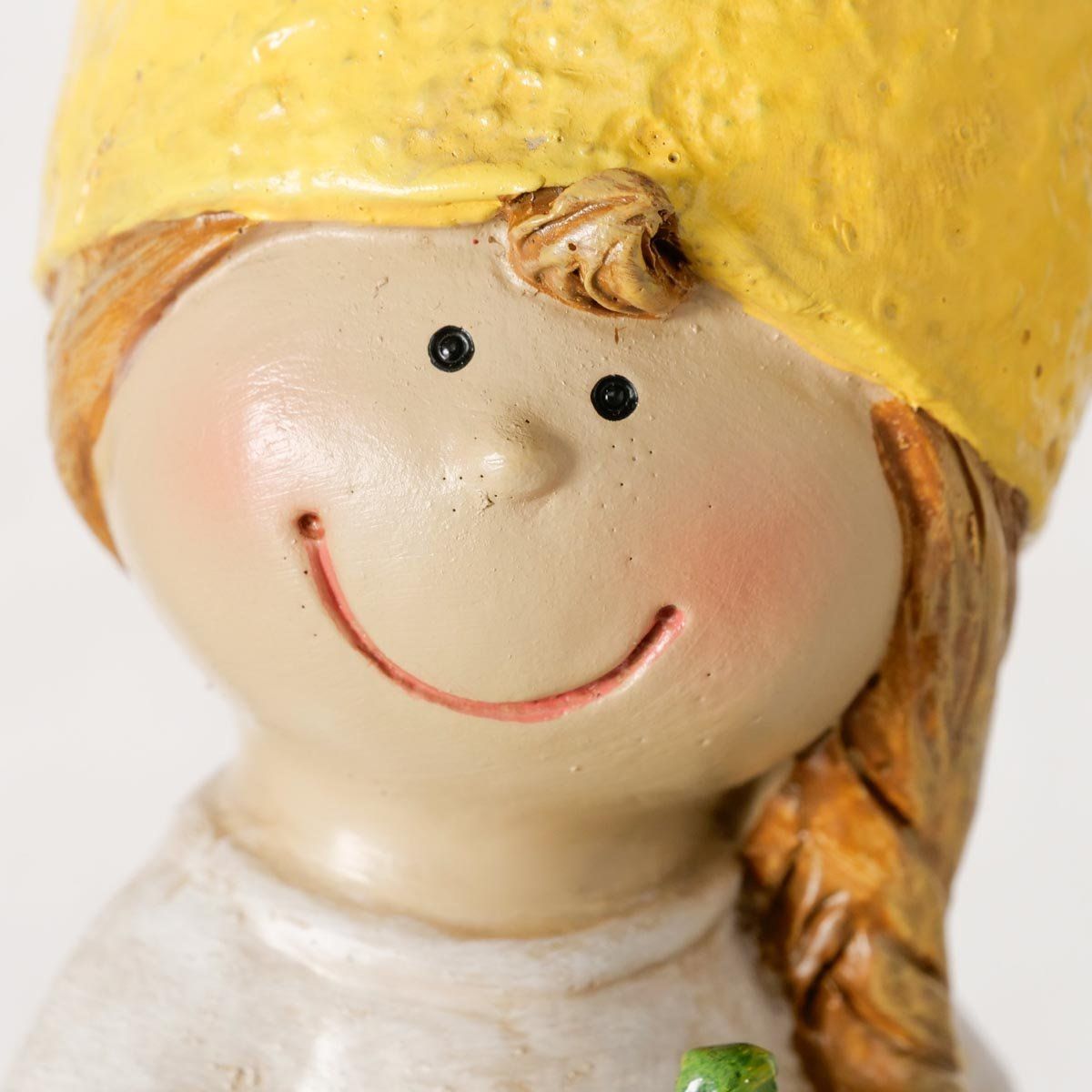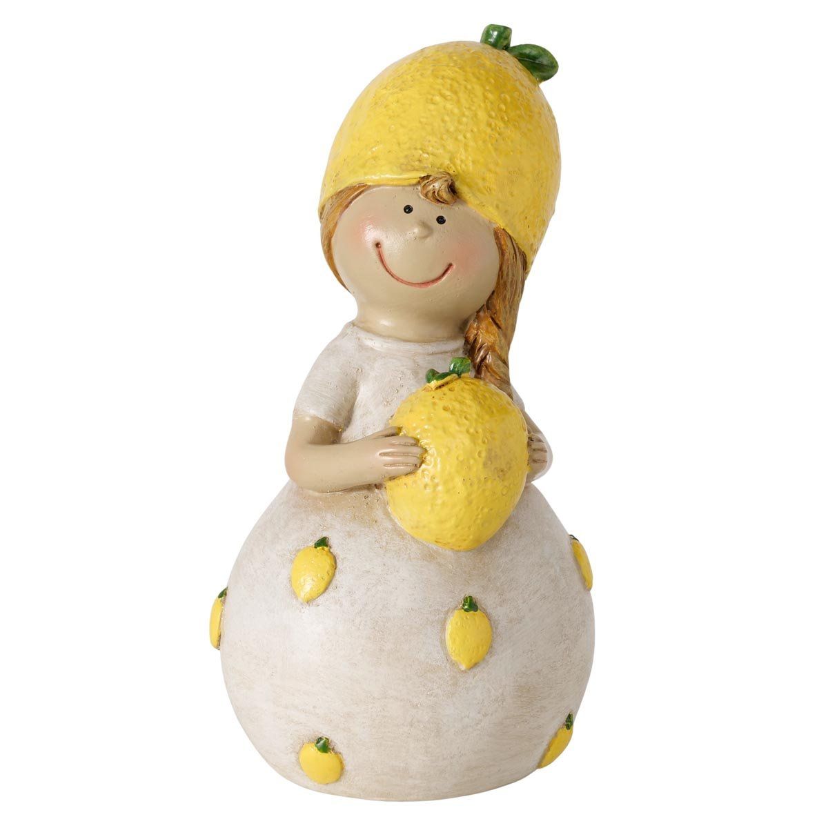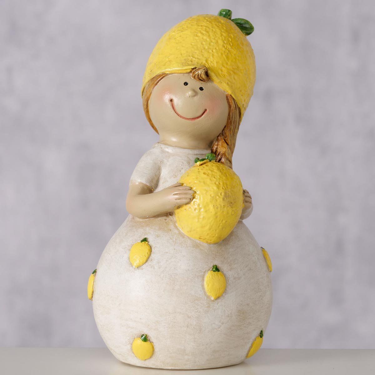 Roztomilá figurka je veselou dekorací, která vnese do interiéru svěžest a hravou atmosféru. Originální postavička s citronovým motivem se skvěle hodí jako jarní dekorace na poličku, komodu, parapet nebo prostřený stůl. Díky jemným detailům a veselému designu oživí každý prostor a potěší milovníky stylových doplňků.