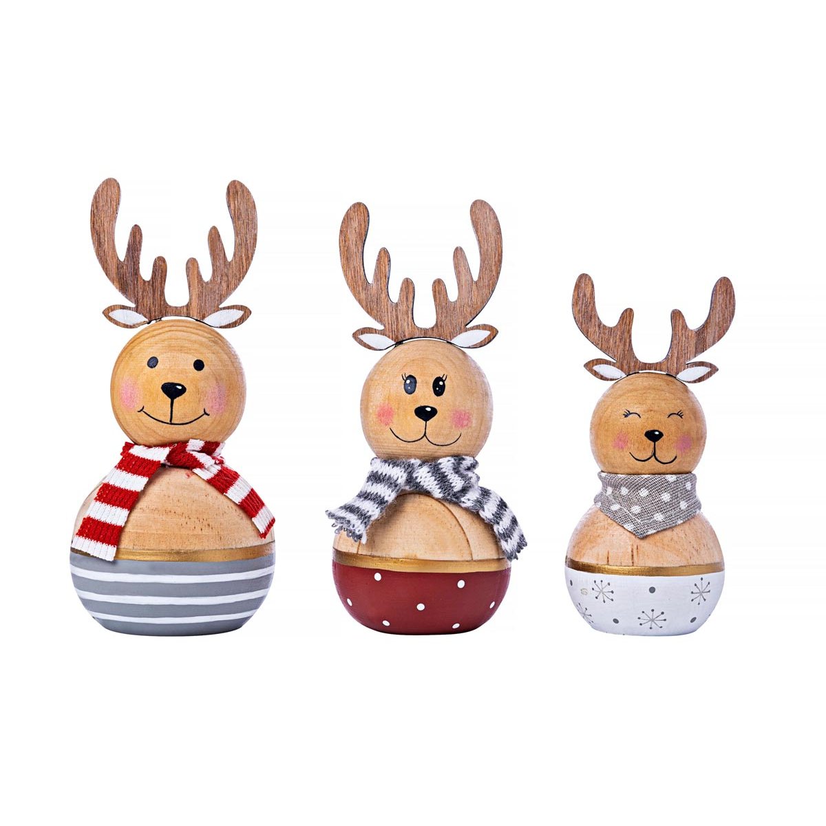 Veselí dřevění sobíci ve třech různých velikostech vykouzlí úsměv na každé tváři. Podívejte, jak jim to sluší: dcerka s puntíkatým šátkem a rodiče s pruhovanou šálou. A když je otočíte, vykouknou na vás jejich drobné huňaté ocásky.