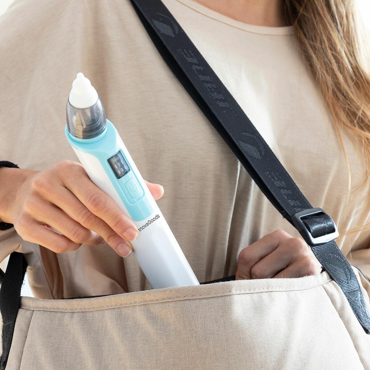 Odsávačka je dobíjecí a přenosná, což umožňuje její použití kdykoliv a kdekoliv. Je vybavena 6 úrovněmi sání, které se přizpůsobují různým typům hlenu. Součástí balení jsou 2 silikonové špičky, 10 opakovaně použitelných filtrů a USB nabíjecí kabel.