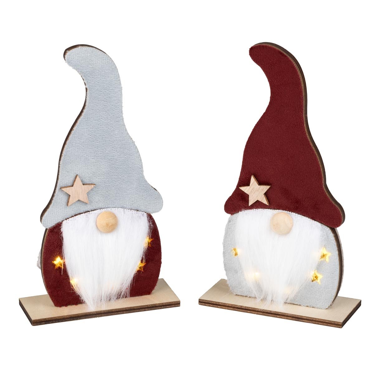 Dřevěný vánoční skřítek s LED, sada 2 ks
