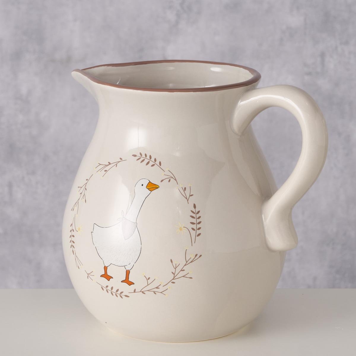 Elegantní džbán Goosie je stylovým doplňkem pro každodenní servírování i slavnostní příležitosti. Díky rozměrům 19 × 17 cm nabízí dostatek prostoru pro vodu, džus i domácí limonády a zároveň může posloužit také jako originální váza pro čerstvé či sušené květiny.