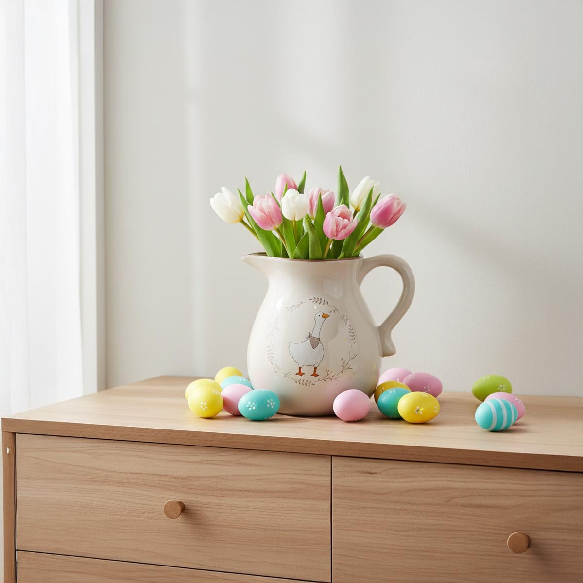 Kvalitní kameninové provedení zajišťuje odolnost a dlouhou životnost, zatímco lesklý béžový povrch dodává džbánu jemný a nadčasový vzhled. Praktickou výhodou je možnost mytí v myčce, díky které je údržba rychlá a pohodlná.