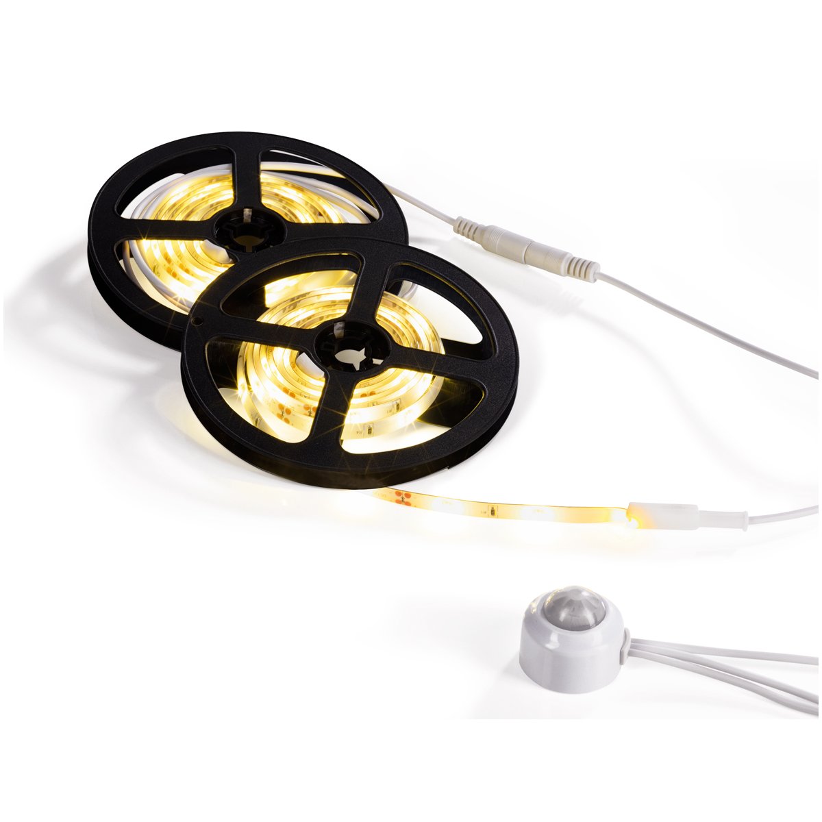 Dvě ohebné světelné lišty s LED diodami, které šetří energii. Automatické zapnutí / vypnutí pomocí pohybového senzoru.