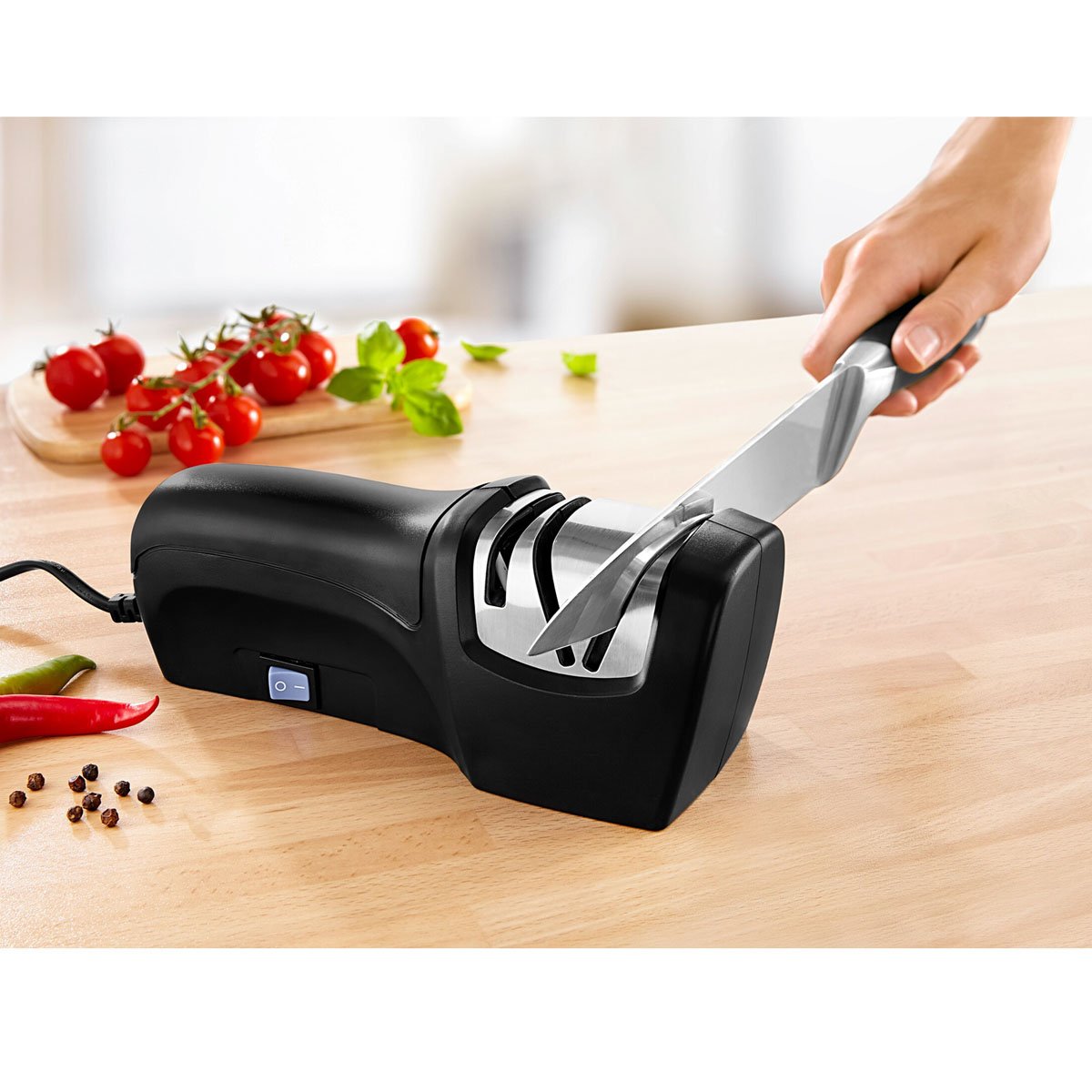 Použití je velmi jednoduché – stačí zapojit do zásuvky a několikrát protáhnout nůž vodicím otvorem. Během chvilky budou vaše nože opět ostré a připravené k použití.