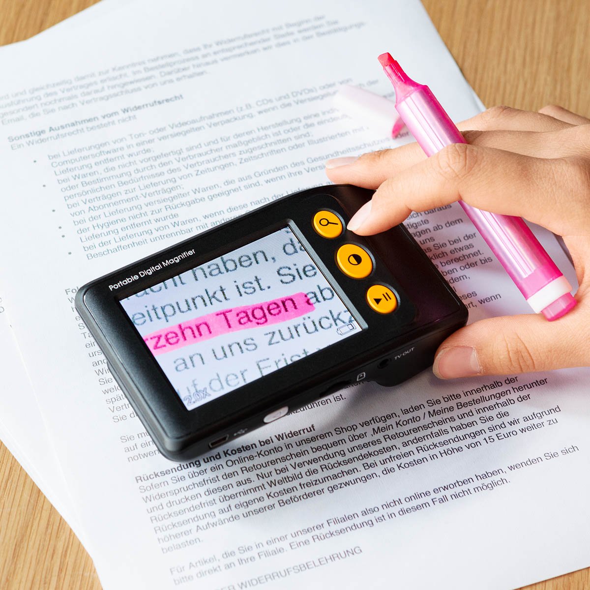S elektronickou lupou můžete nyní číst knihy, časopisy, noviny, nabídky atd. mnohem lépe. S až 25násobným zvětšením, individuálním nastavením barev. Můžete také připojit lupu k počítači nebo TV (pro extra velký displej).