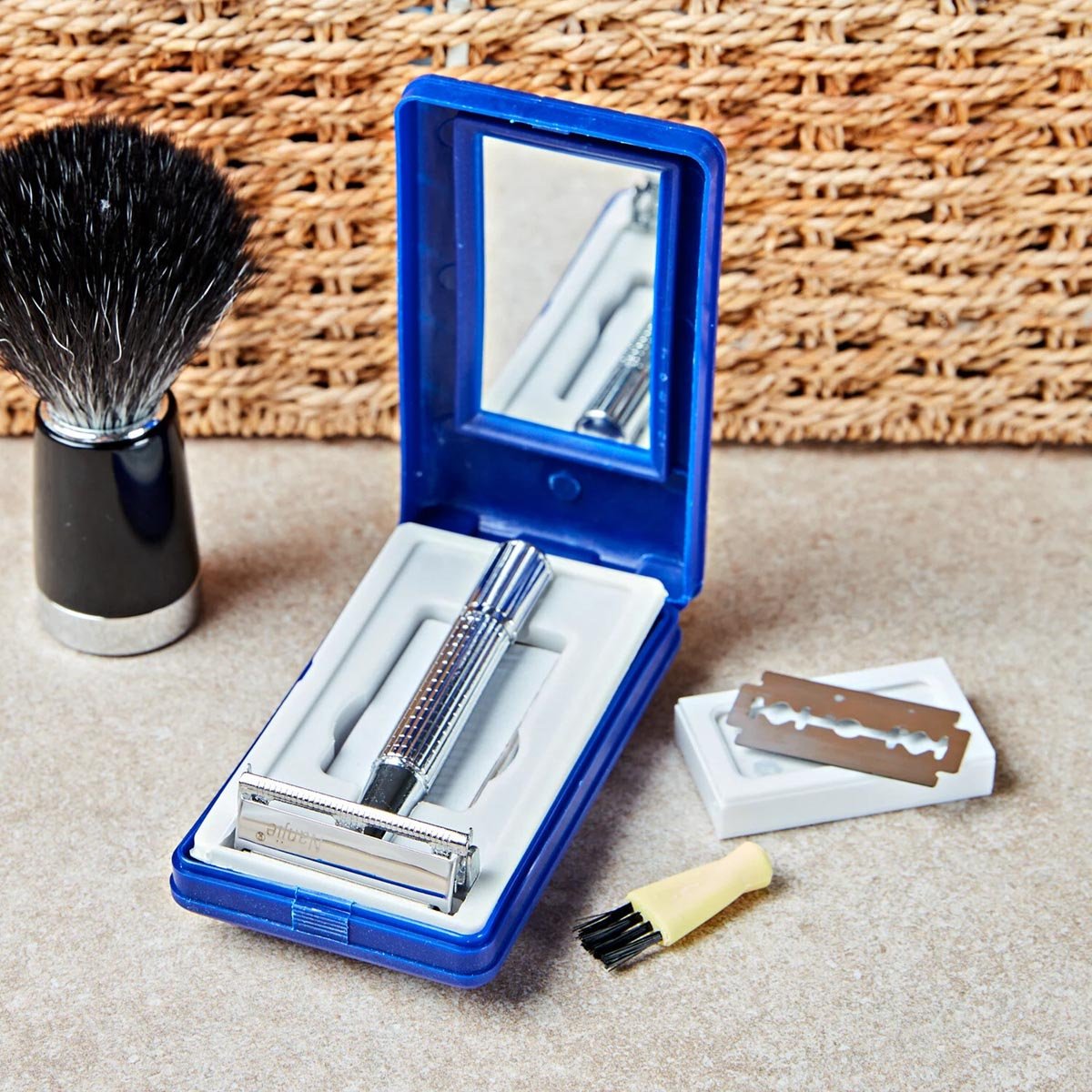 Kvalitní klasika pro hladké mokré oholení jako u holiče: oboustranný kovový holicí strojek s motýlkovým mechanismem. Otočením se hlava otevře a vymění se žiletka. Hladší oholení než elektrickým strojkem, dlouhodobě levnější než jednorázové holicí strojky. Se 3 náhradními žiletkami, boxem se zrcátkem a kartáčkem na čištění.Kvalitní zpracování. Spolehlivý a důkladný. Snadná výměna žiletky.Doplňkové parametry