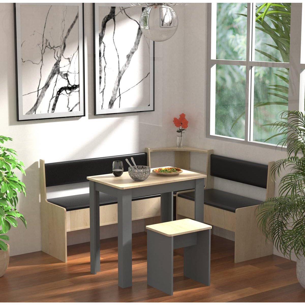 Jídelní sestava VCM Esal Mini je ideálním řešením do menších kuchyní a jídelních koutů. Kombinuje praktické sezení, úložný prostor a kompaktní jídelní stůl, který se vejde téměř kamkoliv.