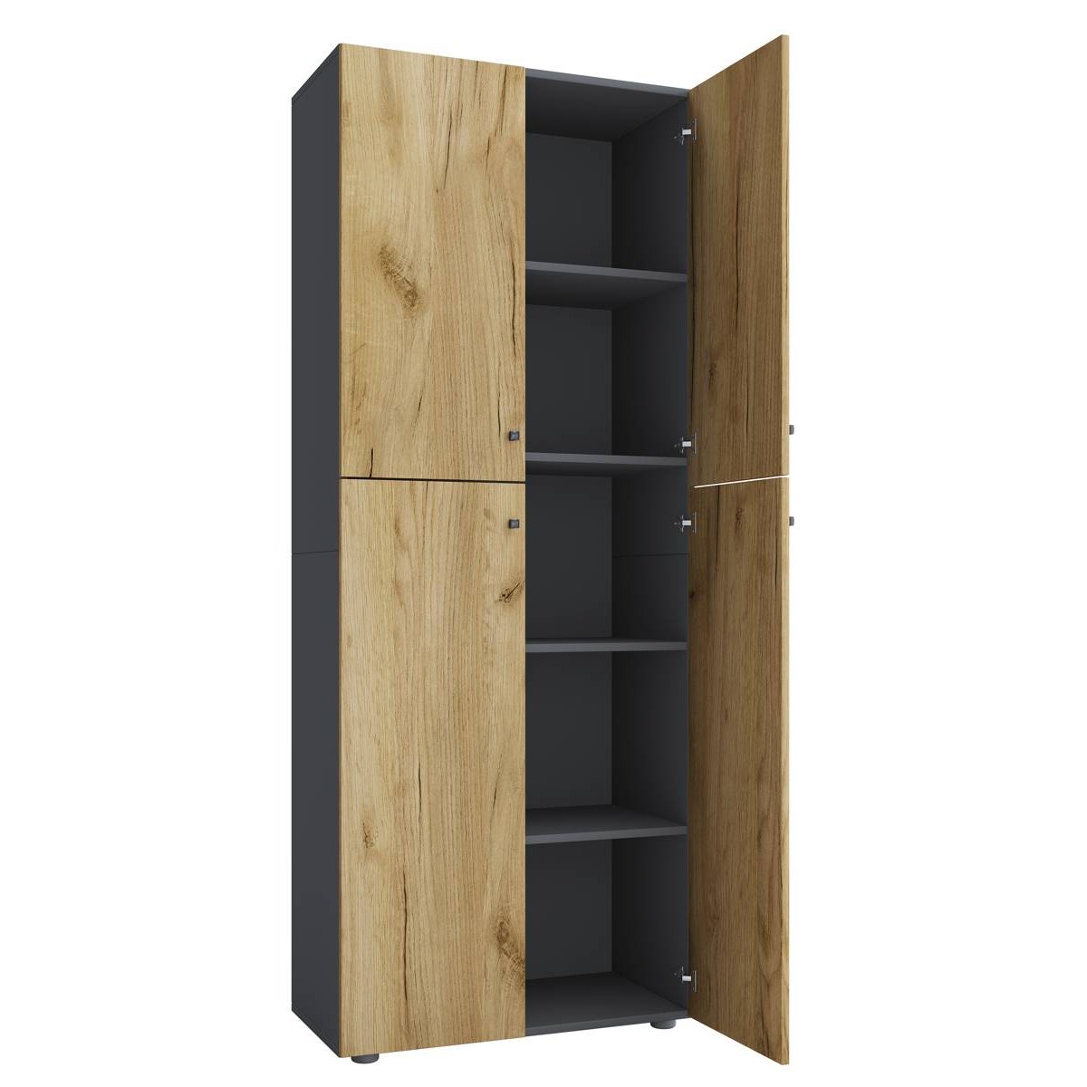 Hlavní vlastnosti: - Kování z vysoce kvalitního kovu - Funkční uspořádání díky 5 policám - Dveře včetně dveří - Rozměry výrobku: V. 182 Š. 70 x H. 39 cm Pět polic nabízí dostatek úložného prostoru. Tuto víceúčelovou skříň lze kombinovat s dalšími protějšky z produktové řady „VCM Lona“.Doplňkové parametry