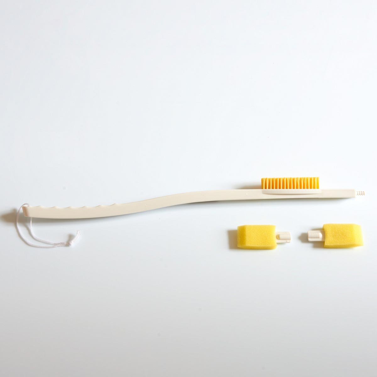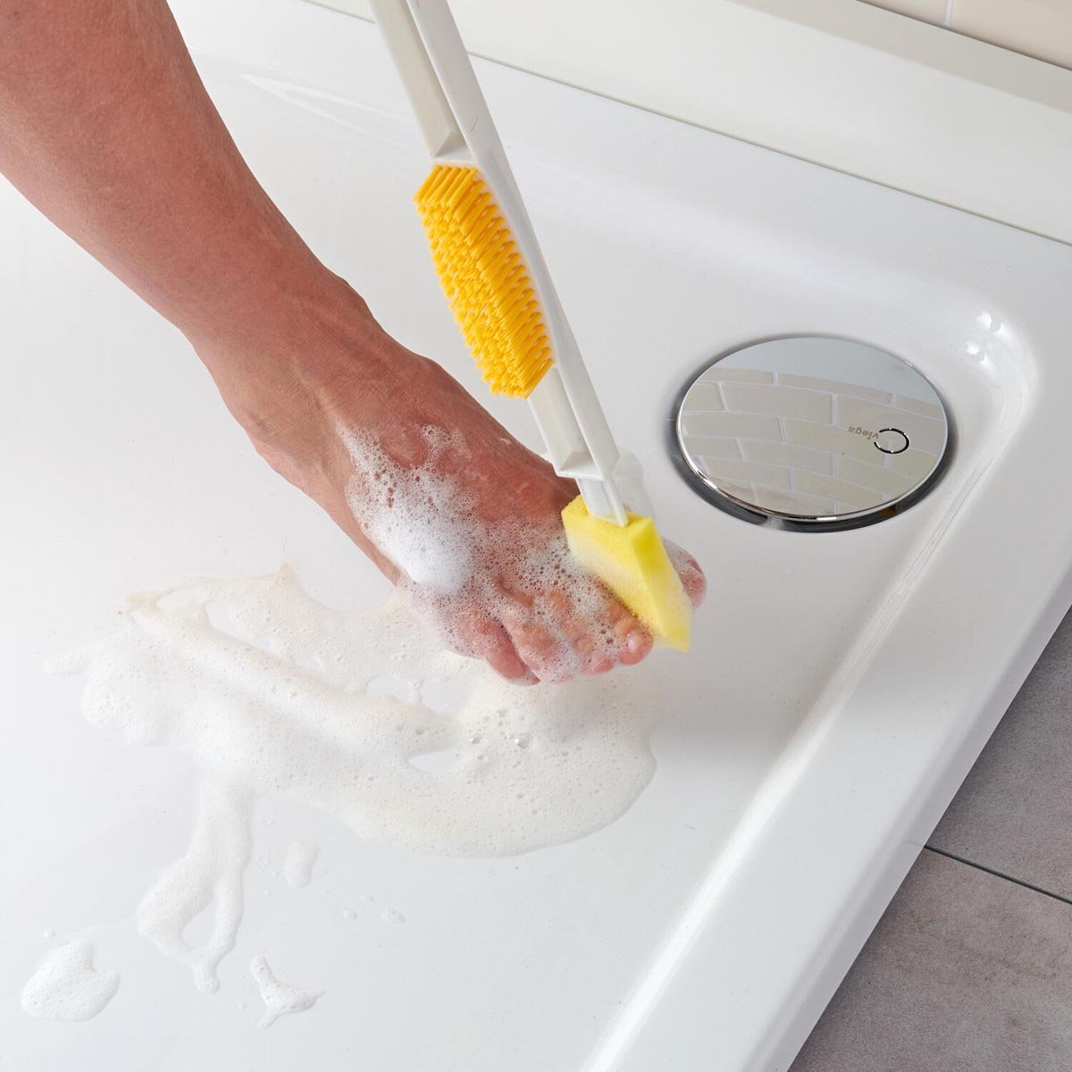 Už žádné namáhavé ohýbání zad! S tímto kartáčem si můžete vydrhnout záda stejně snadno jako nohy a prostory mezi prsty. Kartáč na záda. 2 mycí houby na nohy. Včetně 2 houbiček na mytí nohou.Doplňkové parametry