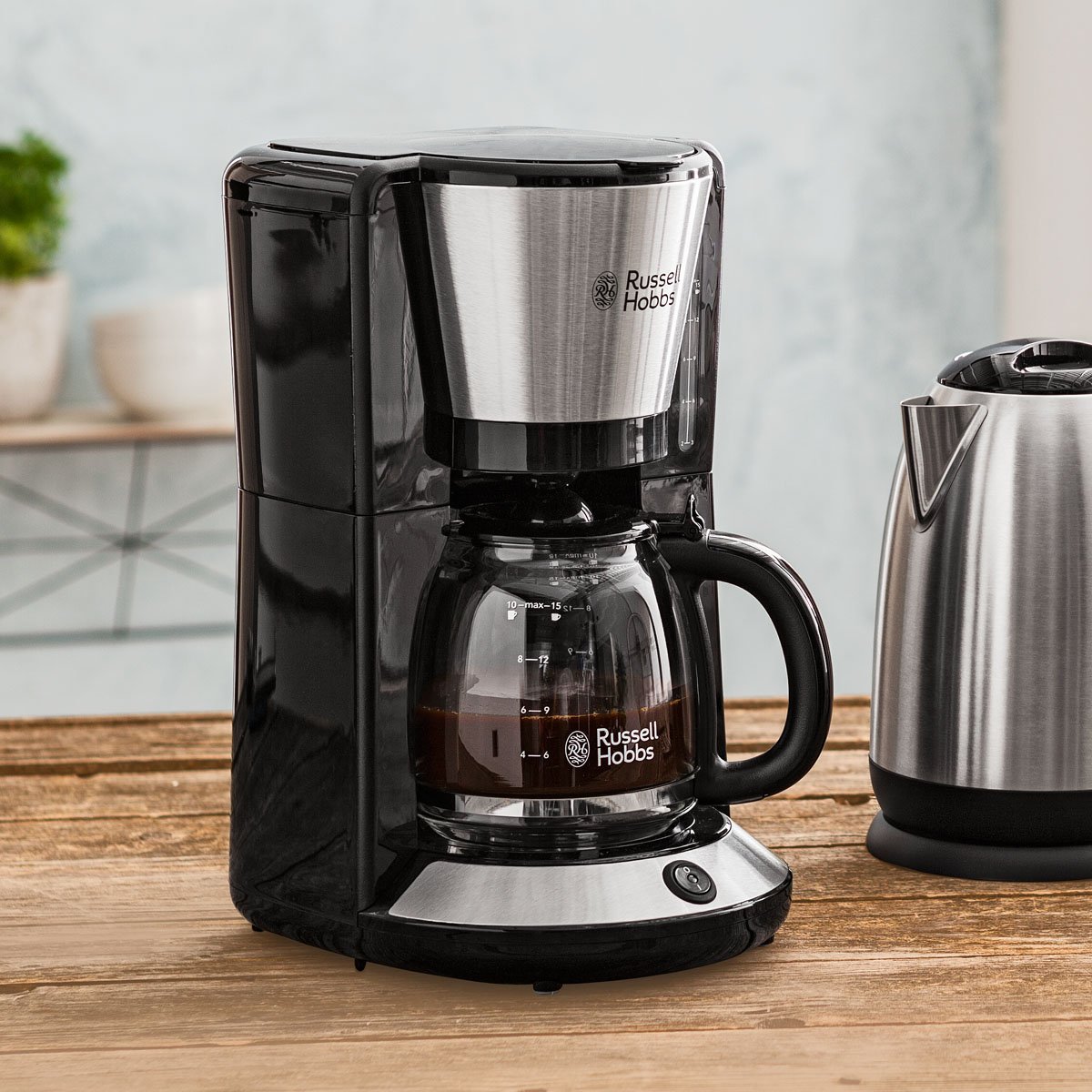 Kávovar Adventure Russell Hobbs je perfektní kombinací odolné nerezové oceli a výrazně černé barvy. Jednoduchý překapávač vám připraví lahodnou kávu díky technologii WhirlTech. Skleněná konvice o objemu 1,25 l umožní připravit až 10 šálků. Vyhřívaná plotýnka udrží kávu až 40 min teplou.
