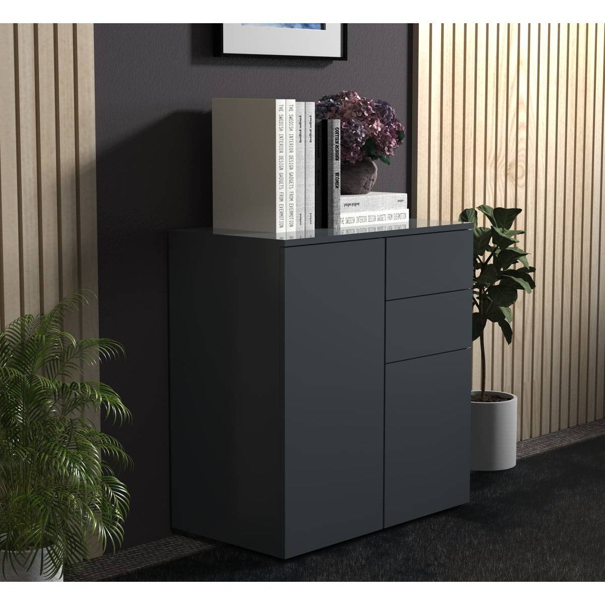 Je vybavena zásuvkami bez úchytek s praktickou funkcí otevírání push-to-open, což zajišťuje elegantní vzhled a snadný přístup k obsahu. Komoda nabízí dvoje praktické panty a dostatek úložného prostoru díky čtyřem přihrádkám.
