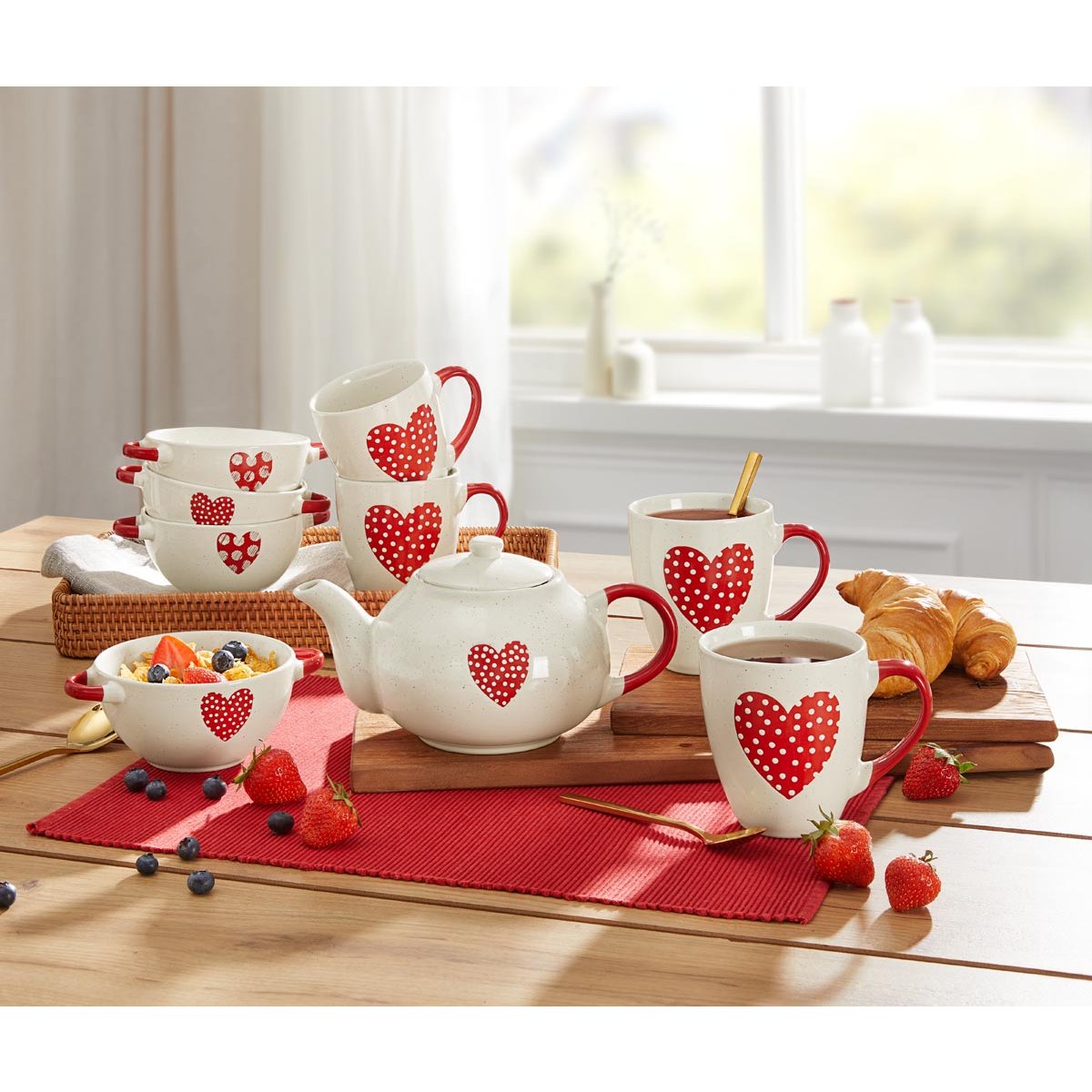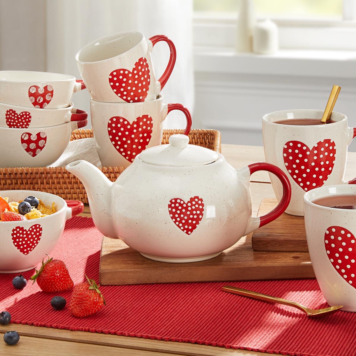 Tato elegantní čajová konvička s jemným motivem srdce přinese na váš stůl útulnou atmosféru a styl. Nadčasový design doplněný ladícím víkem z ní dělá nejen praktického pomocníka, ale i výrazný dekorativní prvek. Konvička je ideální pro každodenní přípravu čaje i slavnostní stolování a krásně ladí s ostatním nádobím ze stejné kolekce.