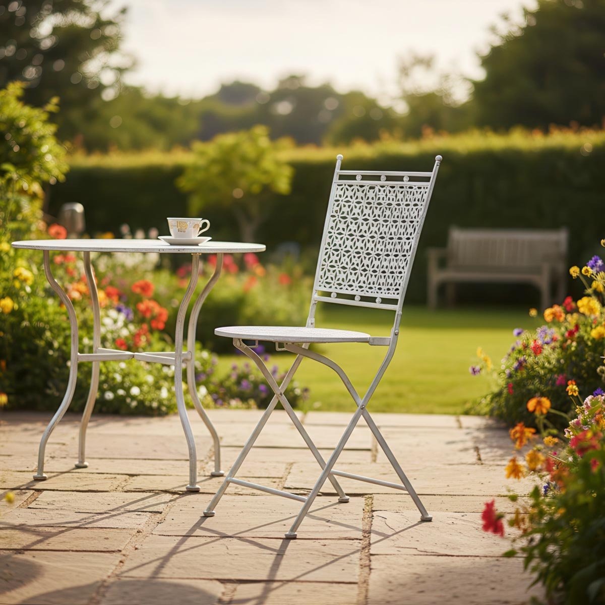 Skládací zahradní židle je praktický a elegantní doplněk pro zahradní nábytek, terasu i balkón. Díky kovové konstrukci je odolná, stabilní a ideální pro venkovní použití. Skládací mechanismus umožňuje snadné uložení a úsporu místa, takže se skvěle hodí jako židle na balkón, doplňkové posezení na terasu nebo mobilní nábytek na zahradu.