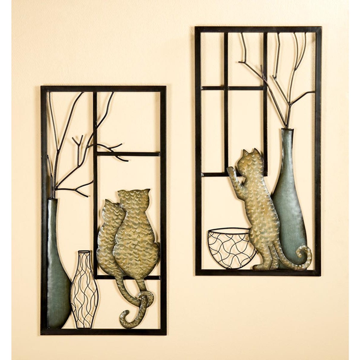 Kovový nástěnný obraz Kočky, sada 2 ks