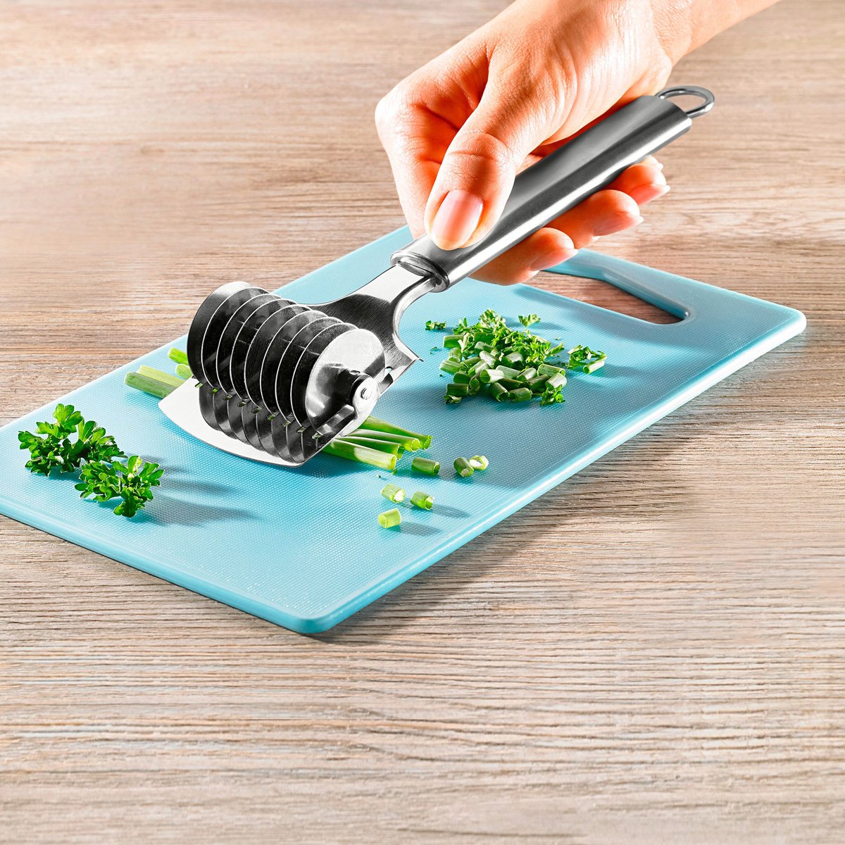 Skvělý pomocník k sekání bylinek! 5 paralelních čepelí totiž poskytne 5x rychlejší řezání než obyčejný nůž. Materiál: umělá hmota, nerezová ocel Rozměry: 19 x 7 x 2 cmDoplňkové parametry