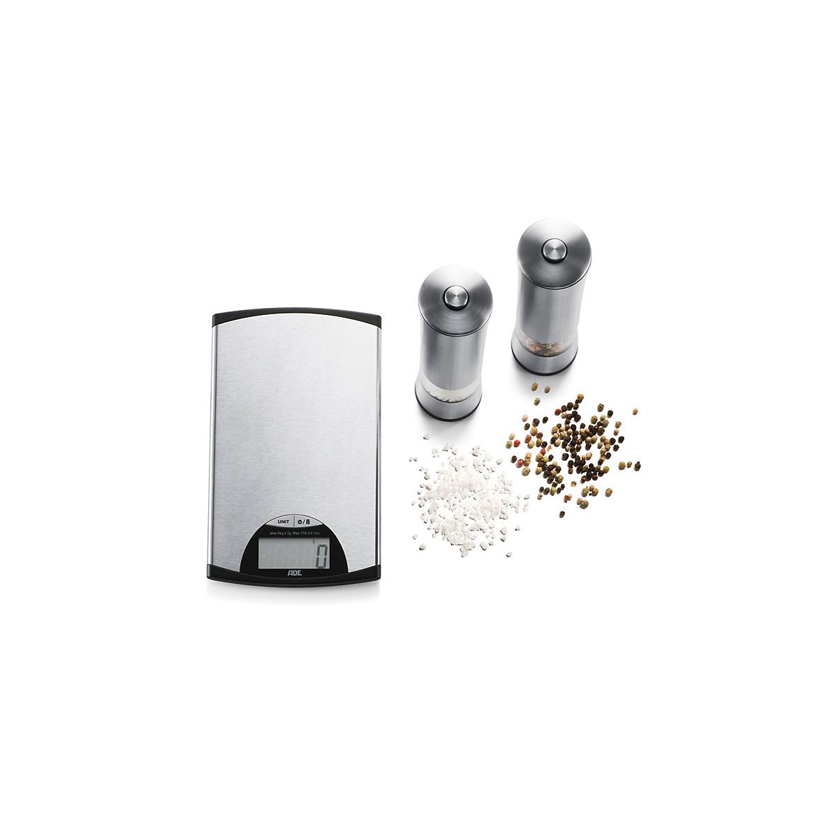 Tato skvělá kuchyňská sada se skládá z kuchyňské váhy (KE850) a elektrických mlýnků na sůl a pepř.