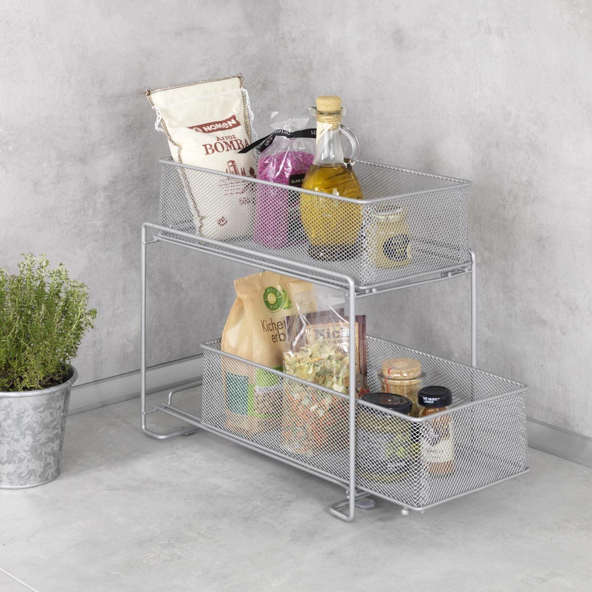 Praktická kuchyňská police se 2 úrovněmi je ideálním řešením pro přehledné uspořádání prostoru a lepší využití místa v domácnosti. Tento kovový organizér do kuchyně nabízí dostatek prostoru pro kořenky, čisticí prostředky, nádobí nebo další drobnosti, které chcete mít vždy po ruce.