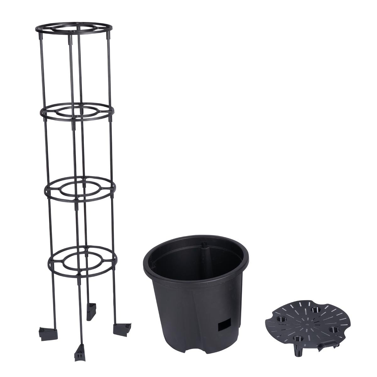 Tento praktický květináč s oporou je ideálním řešením pro pěstování rajčat, okurek i dalších popínavých rostlin. Díky chytrému systému odvodnění s mezidnem a odtokovým otvorem zabraňuje přemokření a hnilobě kořenů. Tři patrové vložky poskytují rostlinám stabilní oporu při růstu.