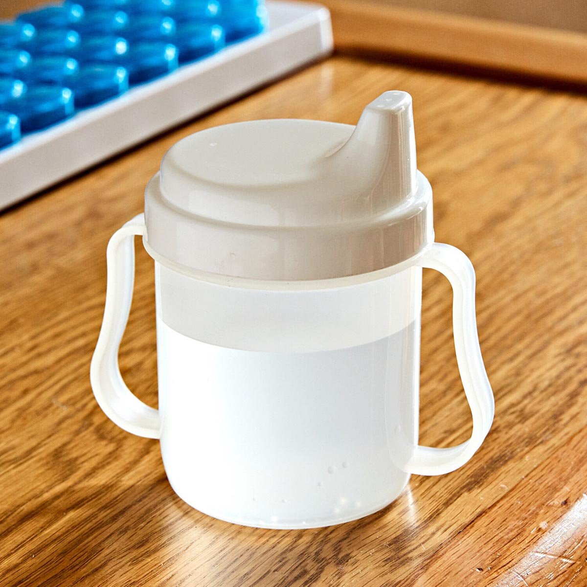 Nepostradatelné v ošetřovatelství: ergonomická láhev na pití se dvěma držadly pro bezpečné držení - i při silném třesu. Víčko umožňuje pít vleže.Doplňkové parametry