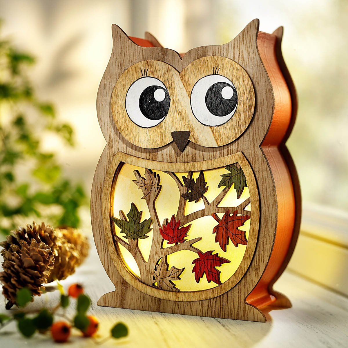 LED Dřevěná dekorace Sova