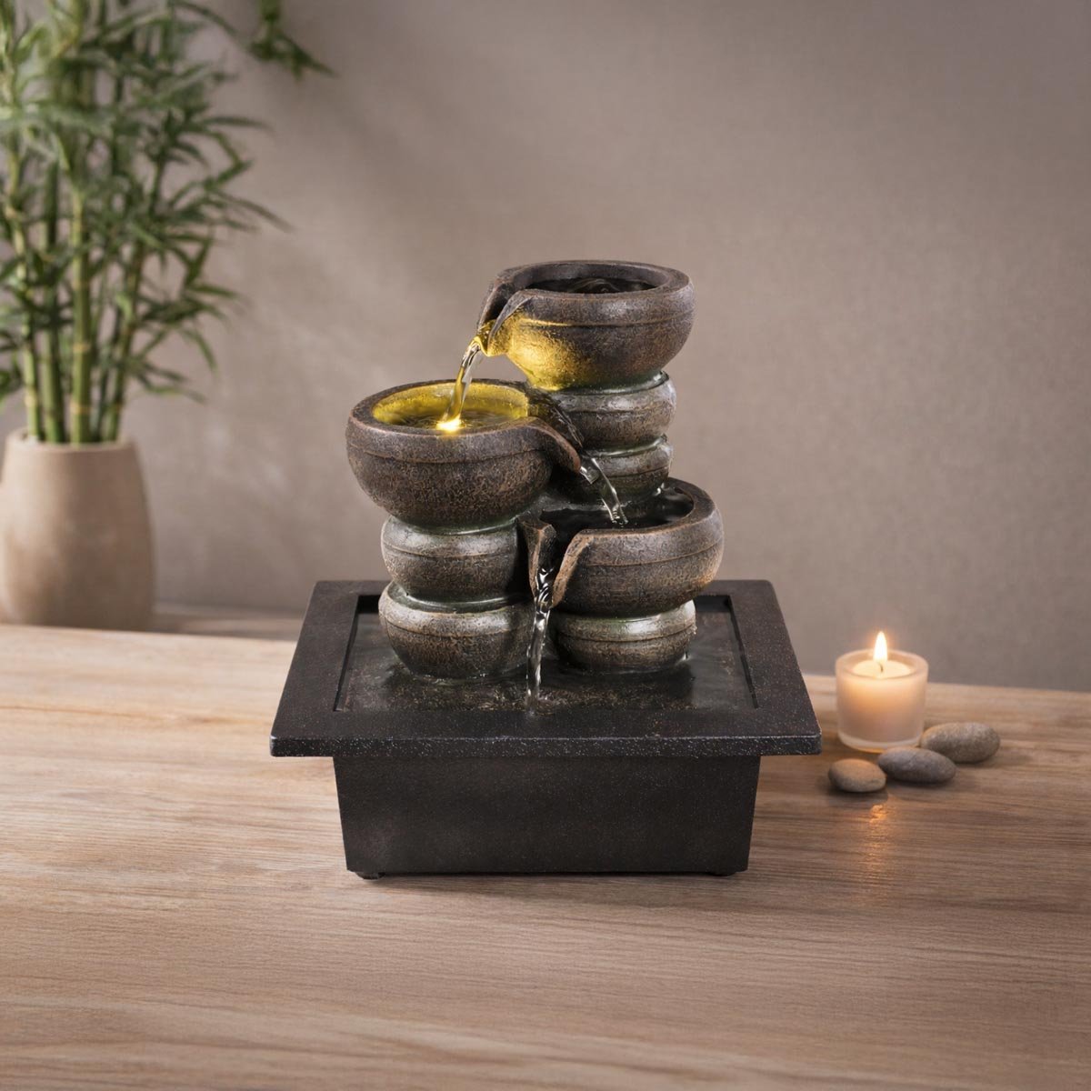 Stylová stolní fontána Cascada vnese do vašeho domova klid a harmonii. Jemně proudící voda v kombinaci s teplým LED osvětlením vytváří příjemnou atmosféru a činí z ní elegantní dekoraci do obývacího pokoje, kanceláře i meditačního koutku.